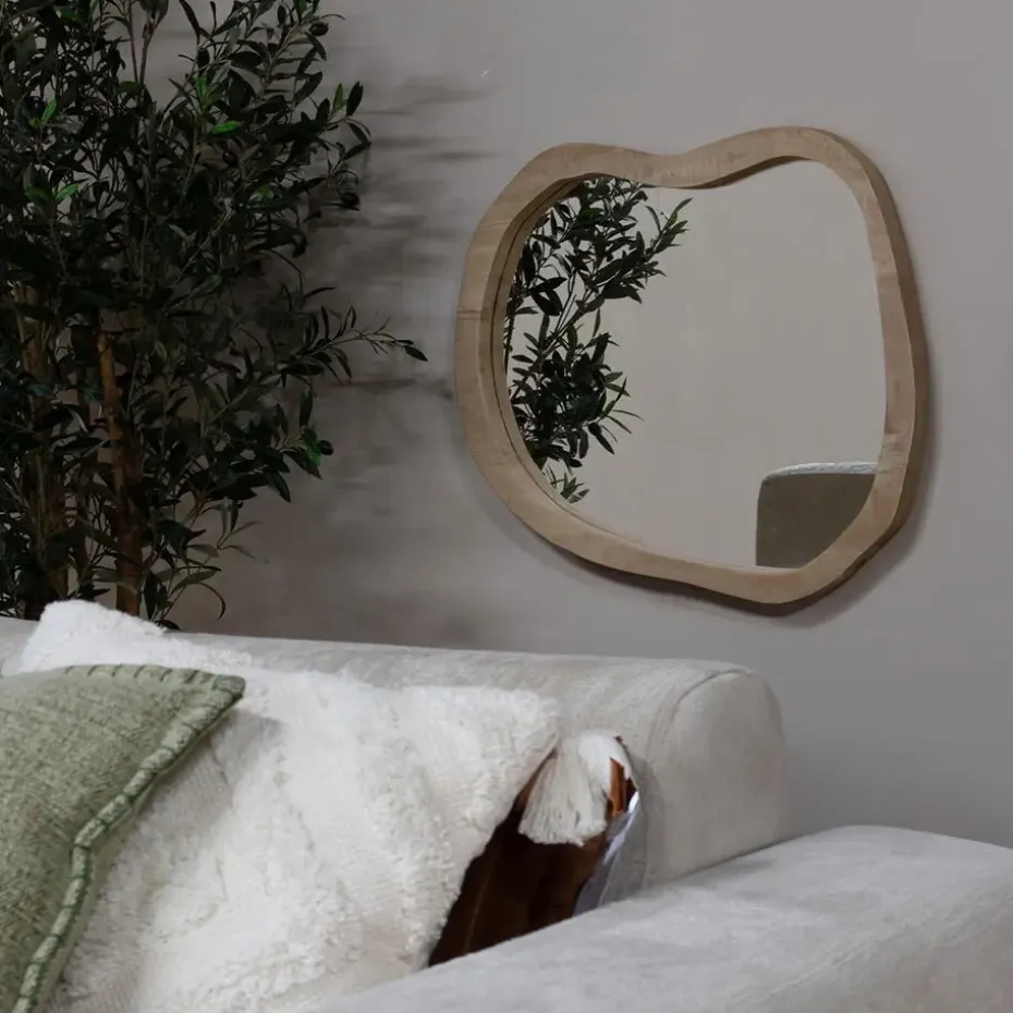 Ontdek de prachtige Spiegel Eef Organisch Naturel van Giga Meubel, een stijlvolle toevoeging aan je interieur. Deze spiegel is ontworpen in een Scandinavische stijl en gemaakt van hoogwaardig mangohout. De natuurlijke kleur van het hout geeft een warme en uitnodigende uitstraling aan elke ruimte. Met zijn organische vorm is deze spiegel niet alleen functioneel, maar ook een eyecatcher die je interieur een unieke touch geeft. Perfect voor gebruik in de hal, slaapkamer of woonkamer, deze spiegel combineert kwaliteit met esthetiek.