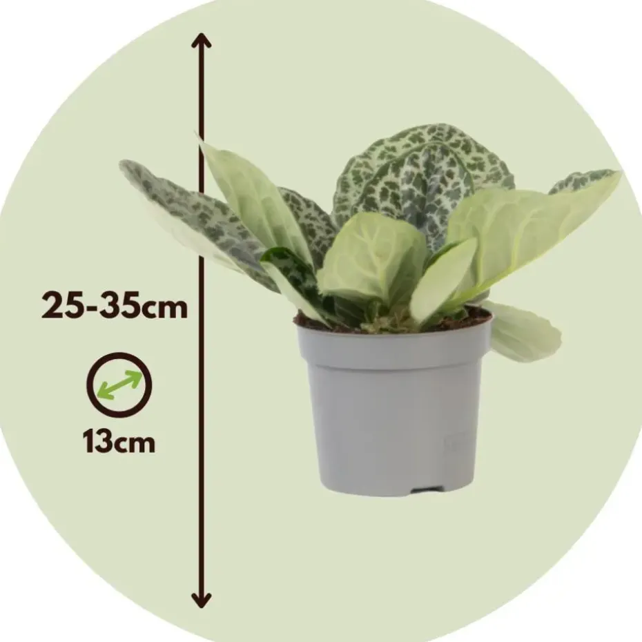 De plant heeft bij levering een hoogte van 25-35cm, gemeten inclusief de kwekerspot. De plant wordt geleverd in een kwekerspot met een diameter van 13cm.
