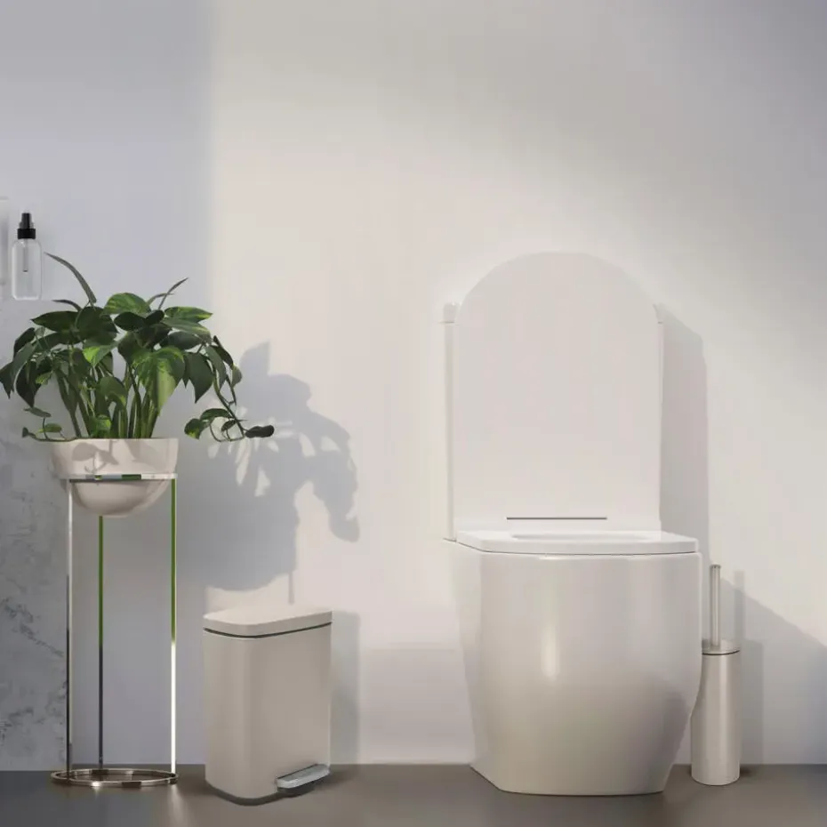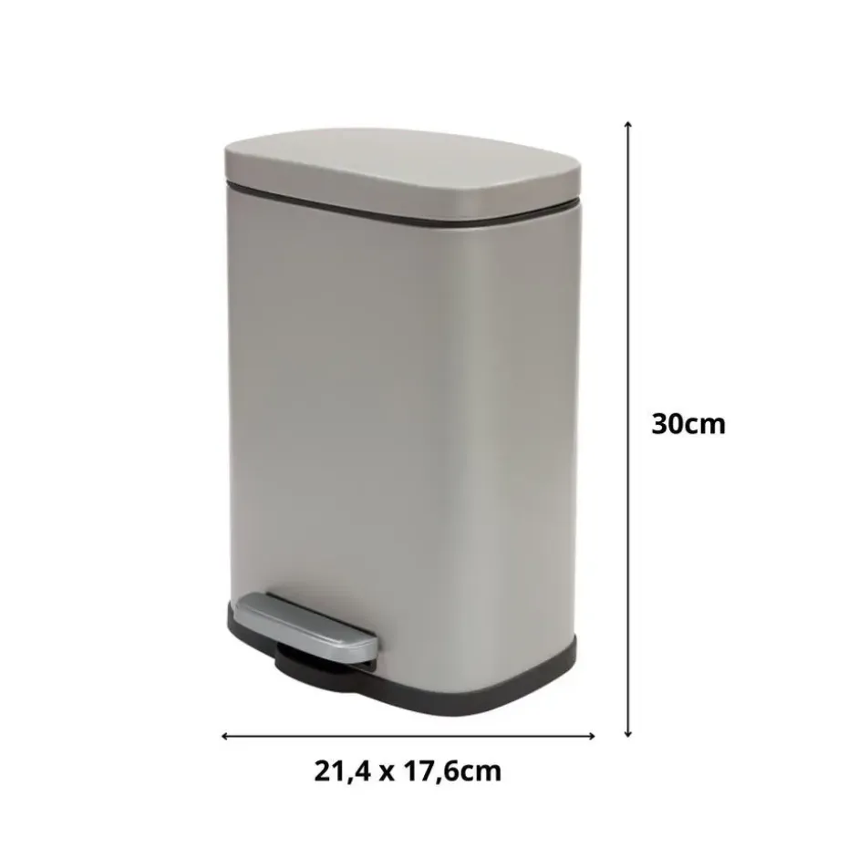 Pedaalemmer/prullenbak model Venice voor in de badkamer en/of toilet, klein model met inhoud 5 liter. Kleur: beige. Deze prullenbak is gemaakt van metaal en de deksel heeft een soft-close sluit systeem. Afmetingen zijn ongeveer L21 x H30 cm. Deze kleine pedaalemmers hebben een handige uitneembare binnenbak gemaakt van gerecycled plastic. Zeer goede kwaliteit materialen zijn gebruikt om deze kleine pedaalemmer een luxe uitstraling te geven.