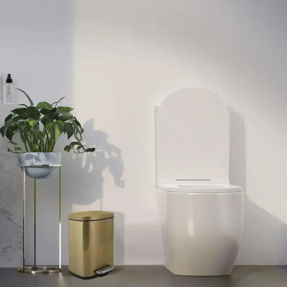 Pedaalemmer/prullenbak model Venice voor in de badkamer en/of toilet, klein model met inhoud 5 liter. Kleur: mat goud. Deze prullenbak is gemaakt van metaal en de deksel heeft een soft-close sluit systeem. Afmetingen zijn ongeveer L21 x H30 cm. Deze kleine pedaalemmers hebben een handige uitneembare binnenbak gemaakt van gerecycled plastic. Zeer goede kwaliteit materialen zijn gebruikt om deze kleine pedaalemmer een luxe uitstraling te geven.
