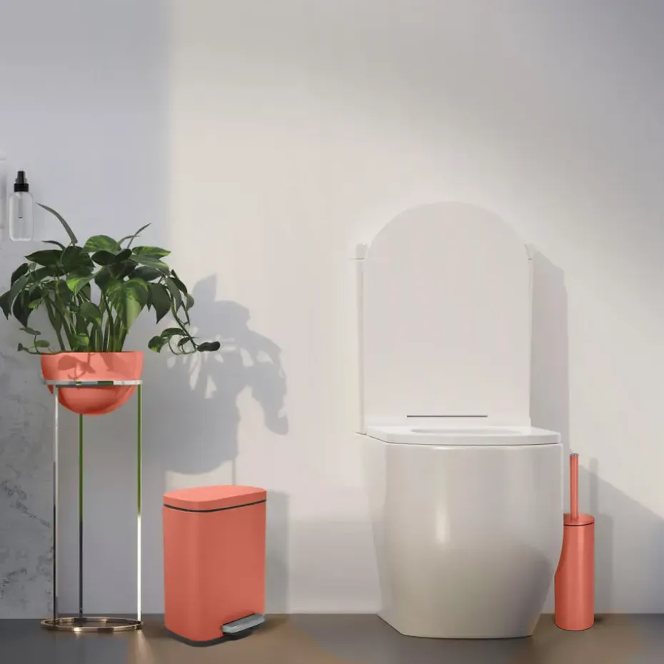 Pedaalemmer/prullenbak model Venice voor in de badkamer en/of toilet, klein model met inhoud 5 liter. Kleur: terracotta. Deze prullenbak is gemaakt van metaal en de deksel heeft een soft-close sluit systeem. Afmetingen zijn ongeveer L21 x H30 cm. Deze kleine pedaalemmers hebben een handige uitneembare binnenbak gemaakt van gerecycled plastic. Zeer goede kwaliteit materialen zijn gebruikt om deze kleine pedaalemmer een luxe uitstraling te geven.