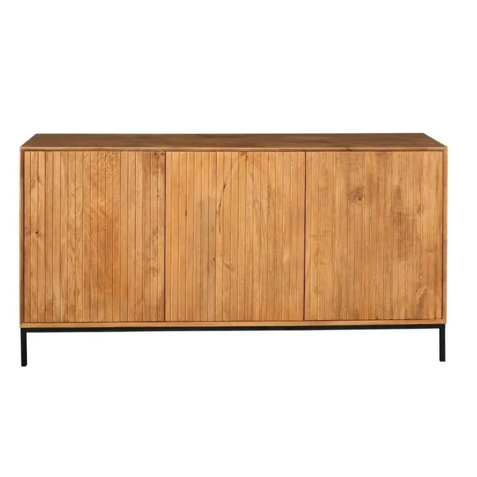 Dressoir Madison Natural is gemaakt van hoogwaardig mangohout. Dit meubelstuk biedt, dankzij drie deuren, voldoende opbergruimte.De deuren zijn voorzien van een stijlvol verticaal lattenpatroon, dit zorgt voor een moderne uitstraling. Daarnaast zijn de deuren voorzien van een handig push-to-open systeem, wat dit meubelstuk een strakke afwerking geeft.