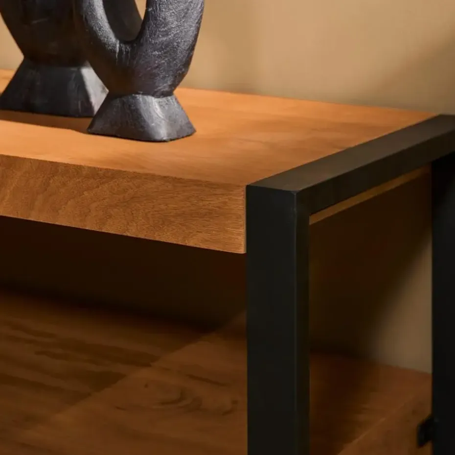 Het tv-meubel is gemaakt van hoogkwalitatief mangohout, wat garant staat voor een duurzame en robuuste constructie. De natuurlijke houtkleur geeft het meubel een warme en authentieke uitstraling.