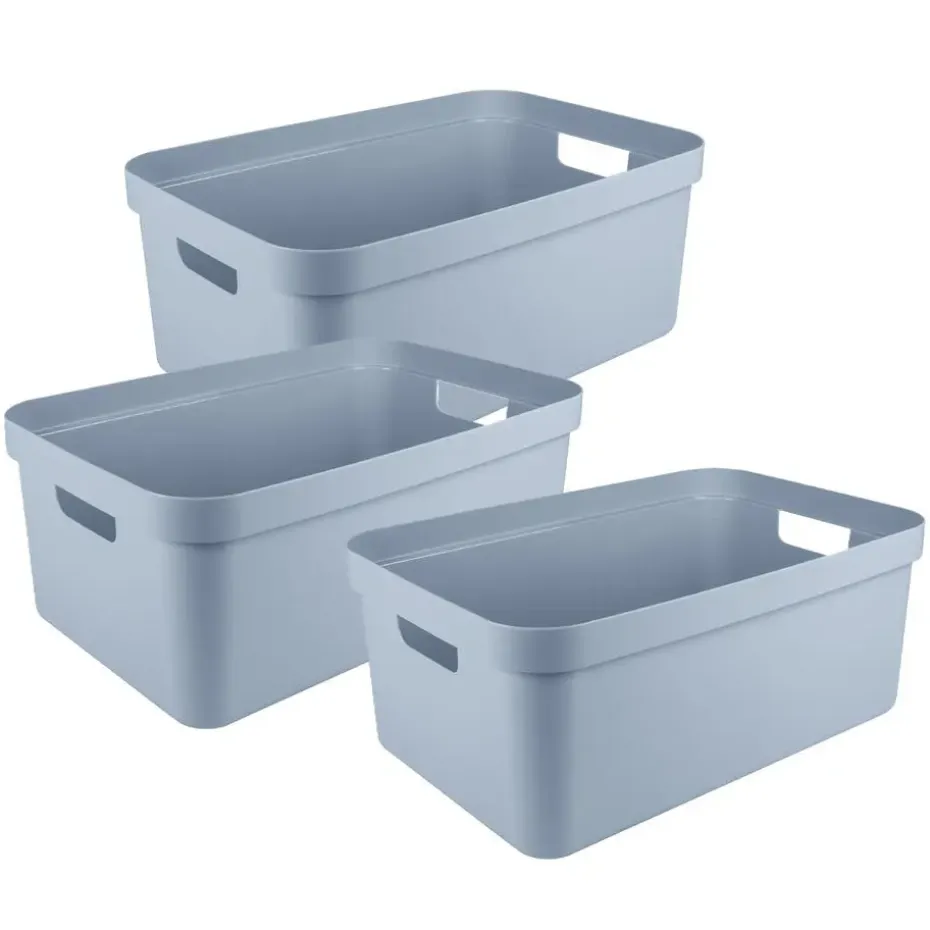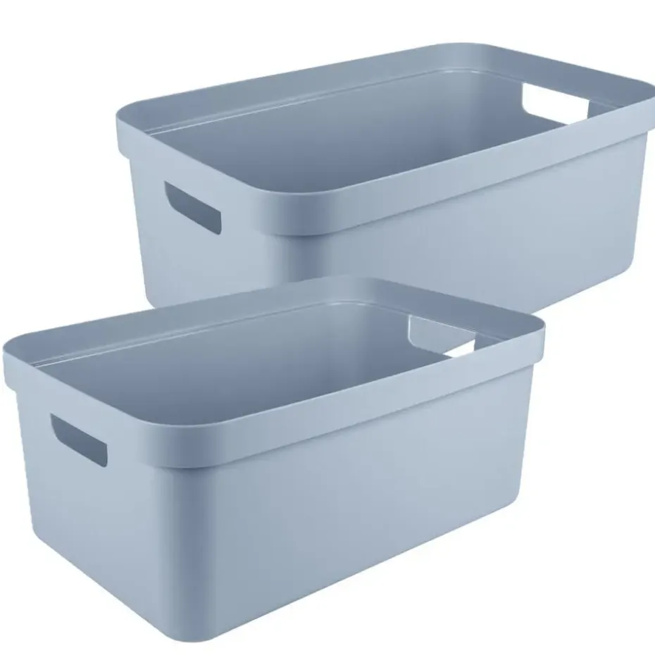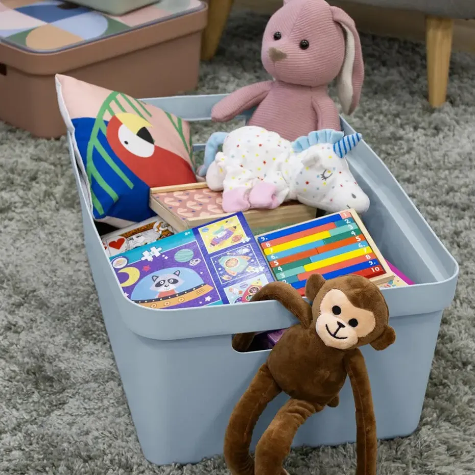 Sunware opbergboxen/opbergdozen/opbergbakken in het lichtblauw van 45 liter. Materiaal: kunststof. Door het moderne design en de luxe uitstraling van de boxen kun je deze opbergboxen/opbergdozen prima in de woonkamer of slaapkamer plaatsen. Deze box is bijvoorbeeld geschikt voor het opbergen van rondslingerend speelgoed, breiwerkjes of het opbergen van boeken. Ook ideaal voor in de badkamer of in de voorraadkast. De mand heeft handgrepen waardoor je ze gemakkelijk kunt dragen.