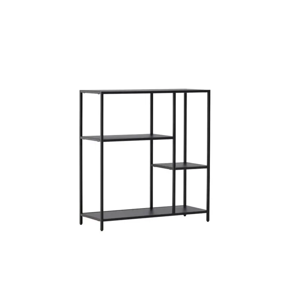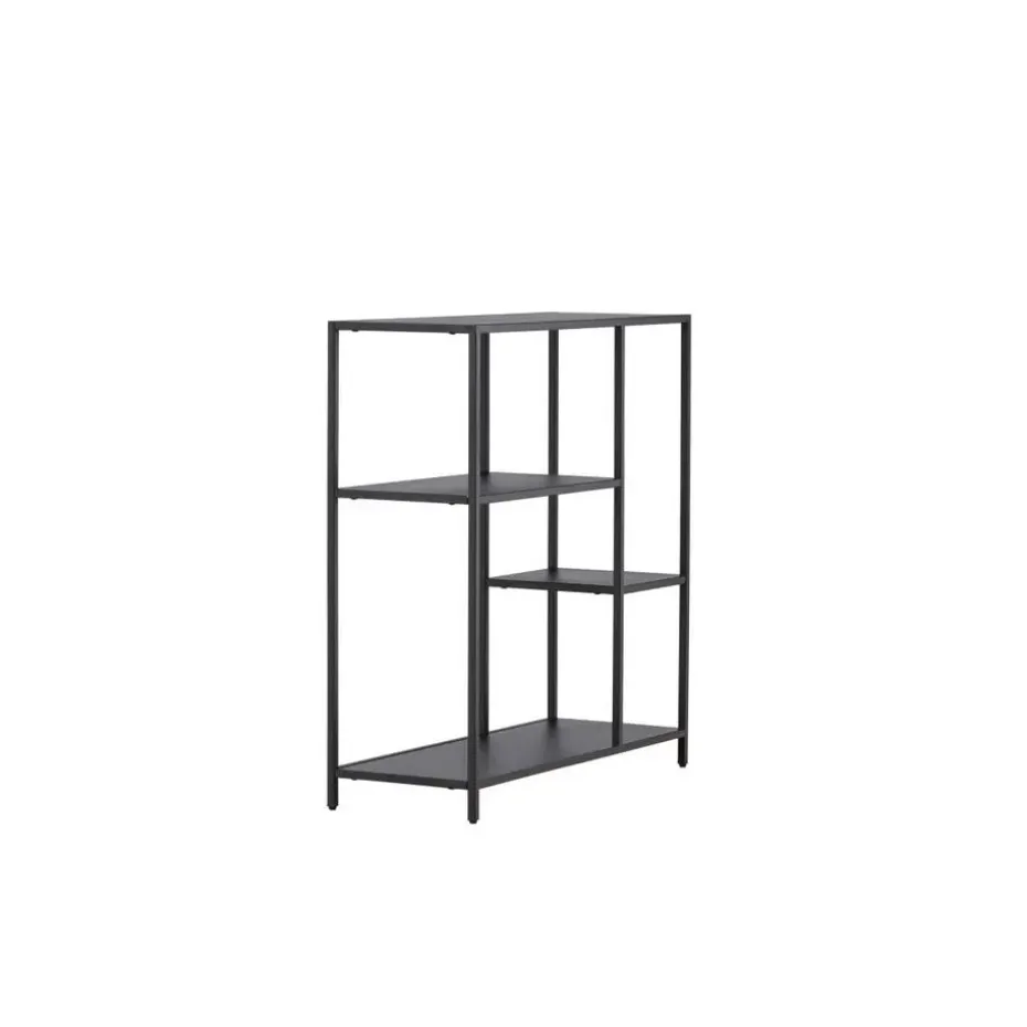 De slimme indeling met verschillende schapniveaus biedt een flexibele opbergoplossing en de slanke zwarte frame voegt een eigentijdse touch toe. Praktisch en doordacht ontworpen, biedt deze sidetable de ideale plek om je decoraties te laten stralen of je dagelijkse benodigdheden binnen handbereik te houden.
