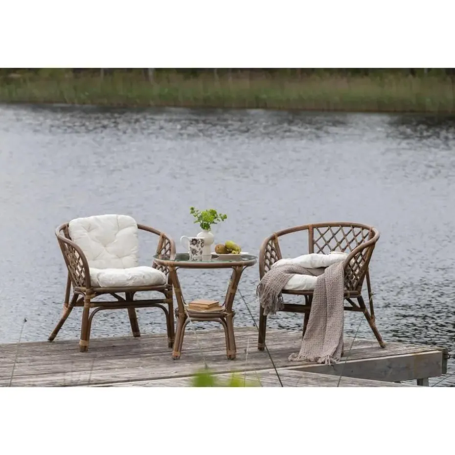 Deze café set is perfect voor wie op zoek is naar een uitnodigende en praktische oplossing voor buiten. Combineer de Tarek met kleurrijke kussens of accessoires voor een persoonlijke touch en geniet van stijlvolle momenten in de buitenlucht.