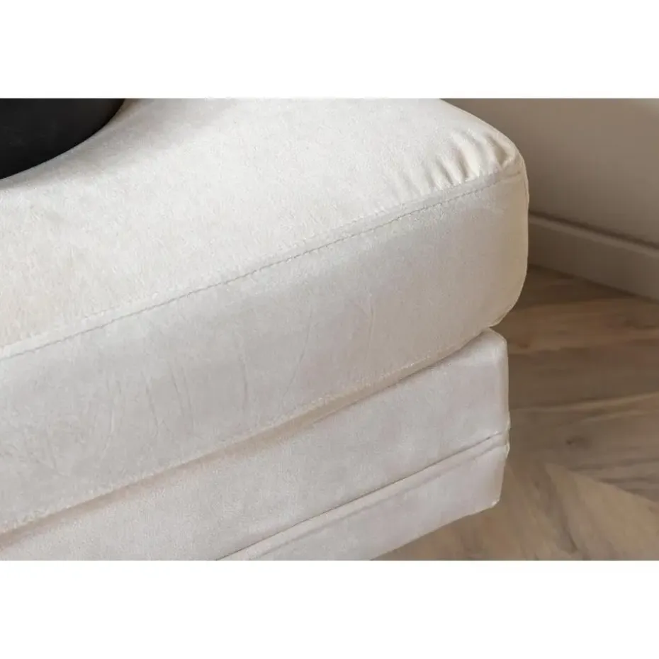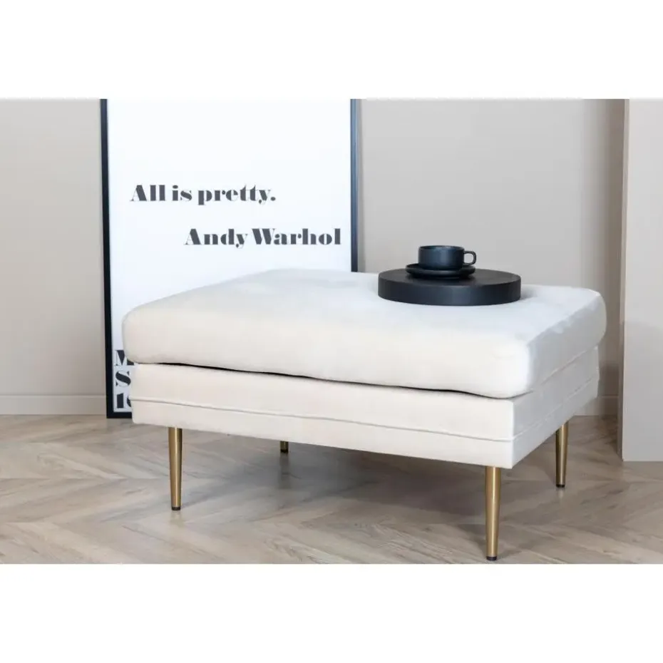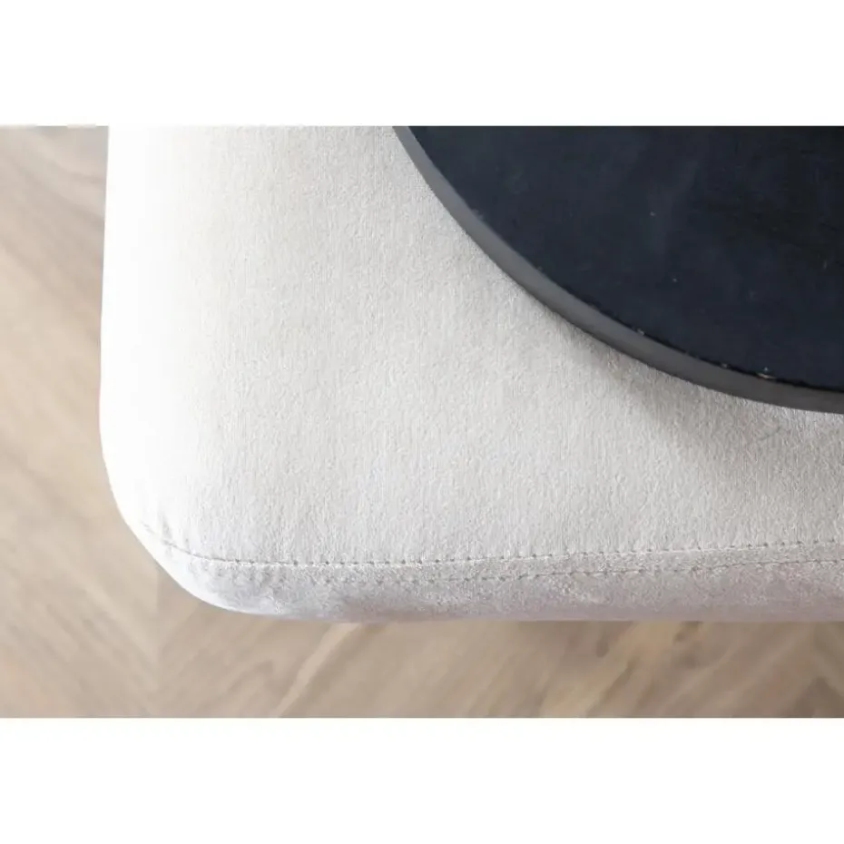 Onderhoudsadvies: Het fluweel heeft de neiging om drukplekken te krijgen wanneer de pool plat ligt. De afdrukken kunnen de stof er versleten uit laten zien, wat heel normaal is voor dit type materiaal. Afhankelijk van hoe het licht valt, kan de stof veranderen in de meest verschillende tinten. De Tess hocker is verkrijgbaar in de kleuren zwart, groen, beige, blauw en roze.
