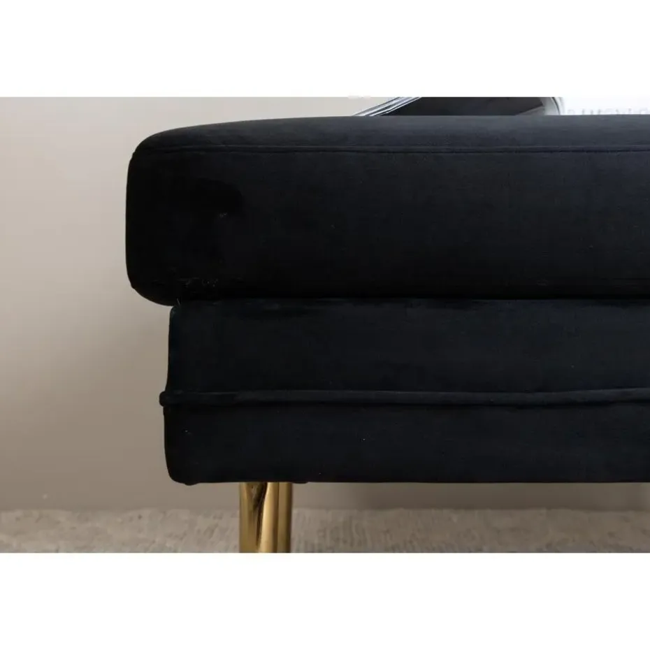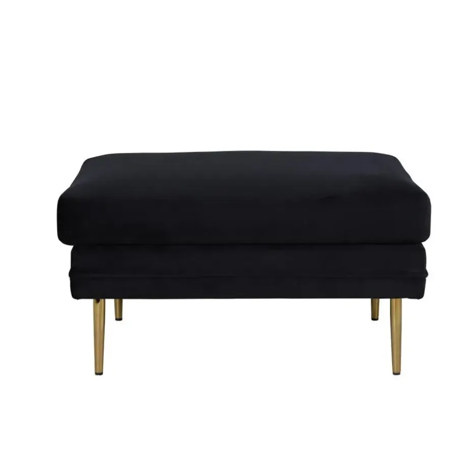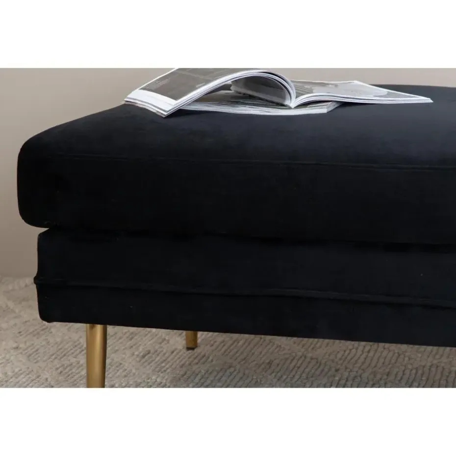 De Tess hocker is een luxueus, elegant en tijdloos meubelstuk dat een echte blikvanger vormt! Hier wordt strak Scandinavisch design gecombineerd met zachte vormen. Het doordachte geheel van de hocker zorgt ervoor dat hij net zo goed alleen kan schitteren als stijlicoon, als samen met onze fauteuil uit dezelfde serie. Uitgevoerd in een brutale zwarte kleur van fluweelzachte stof en een frame van hout en metaal. De stijlvolle smalle poten zijn van messing gepolijst metaal en vormen een mooi detail. Verhoog de interieurstijl in uw huis!