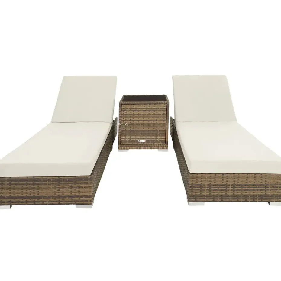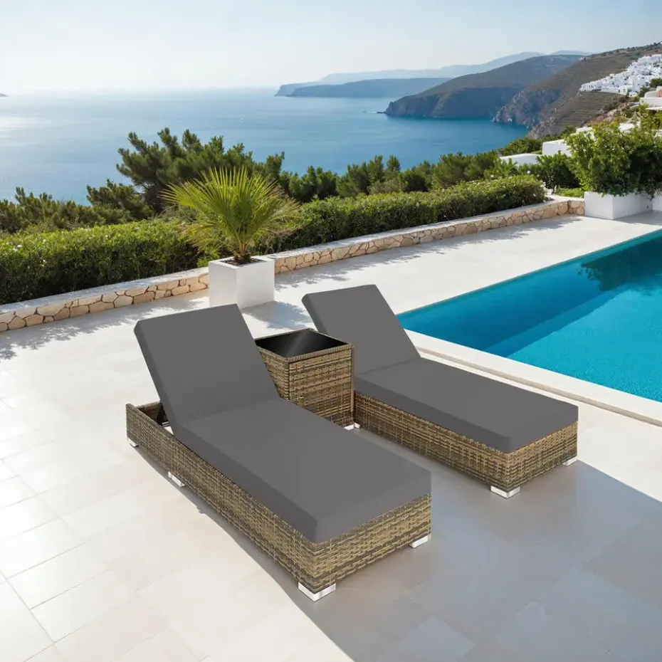 Verander je tuin of terras in een echte wellness-oase met onze hoogwaardige wicker tuinligbedden. Deze stijlvolle en comfortabele set biedt niet alleen pure ontspanning, maar geeft je buitenruimte ook een vleugje luxe. De set bestaat uit twee ligbedden en een praktische bijzettafel, ideaal voor gezellige momenten met zijn tweeën.