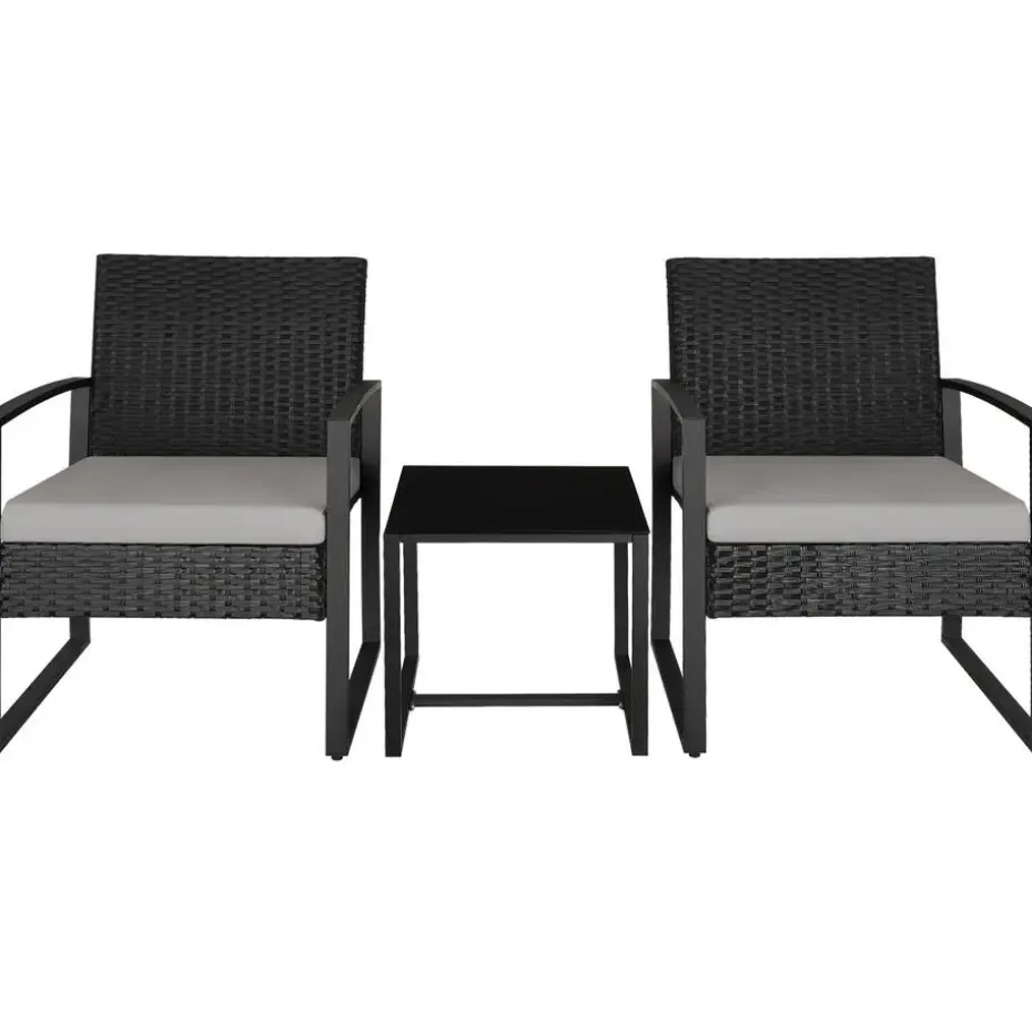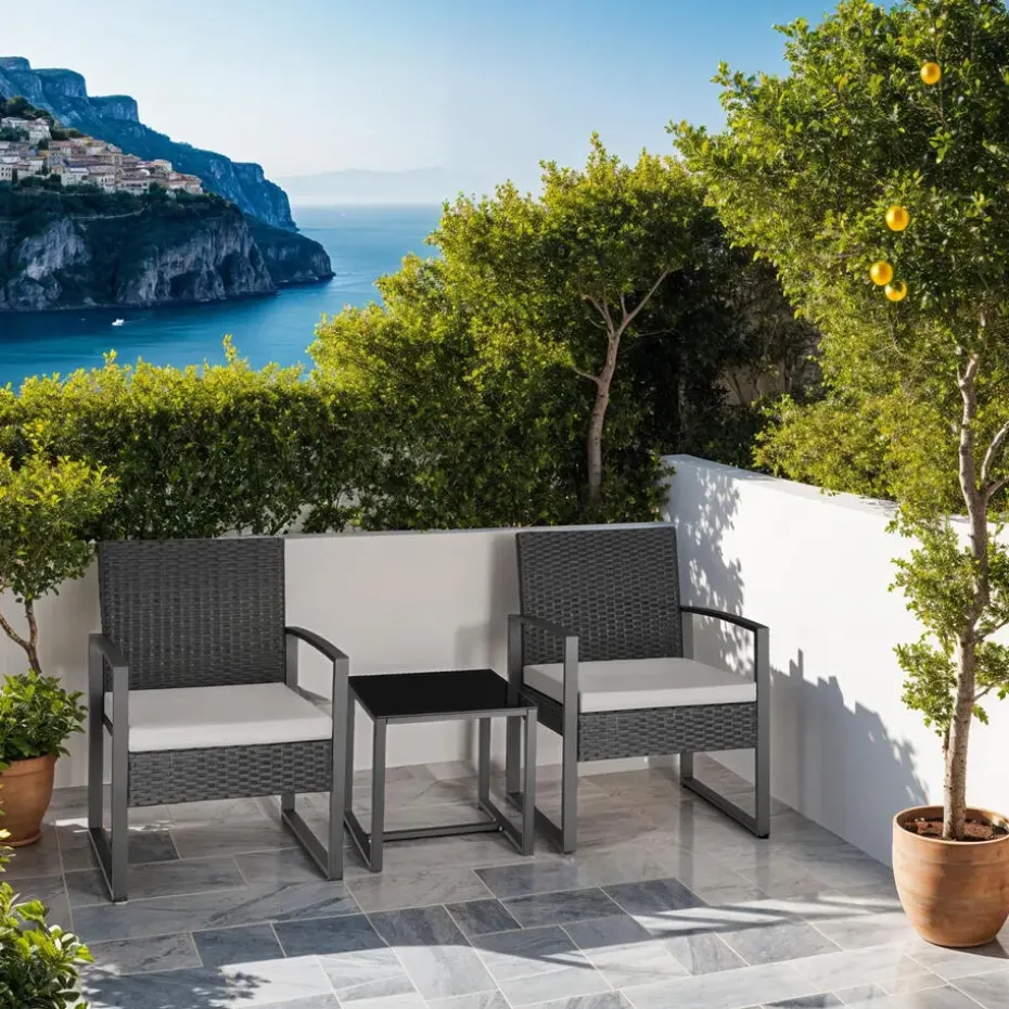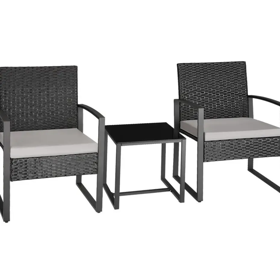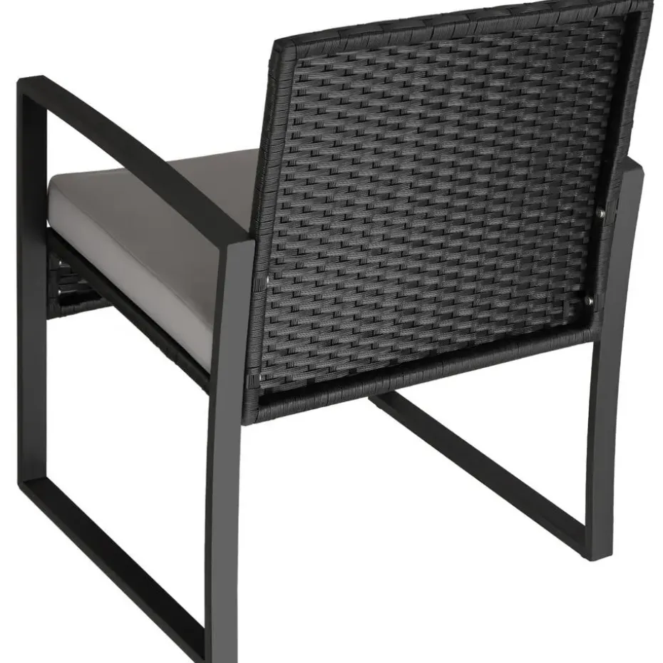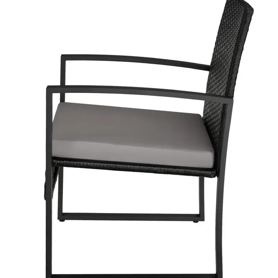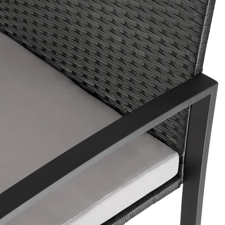 Maak iets gezellig van je buitenruimte met de uitnodigende wicker zitgroep Granada voor twee personen. De slanke stalen frames, het fijne kunststofgaas en de zachte kussens zijn optisch perfect op elkaar afgestemd. Verder overtuigt de set door zijn duurzaamheid en lage onderhoudseisen. Op de robuuste veiligheidsglasplaat in stijlvol zwart zijn heerlijke koffie, lekkere snacks en spannende boeken altijd binnen handbereik. De in hoogte verstelbare poten zorgen altijd voor een precies evenwicht, ook op oneffen vloeren. Trakteer jezelf op zomerse genietmomenten op het terras, balkon of in je tuin met de leuke tuinset Granada.