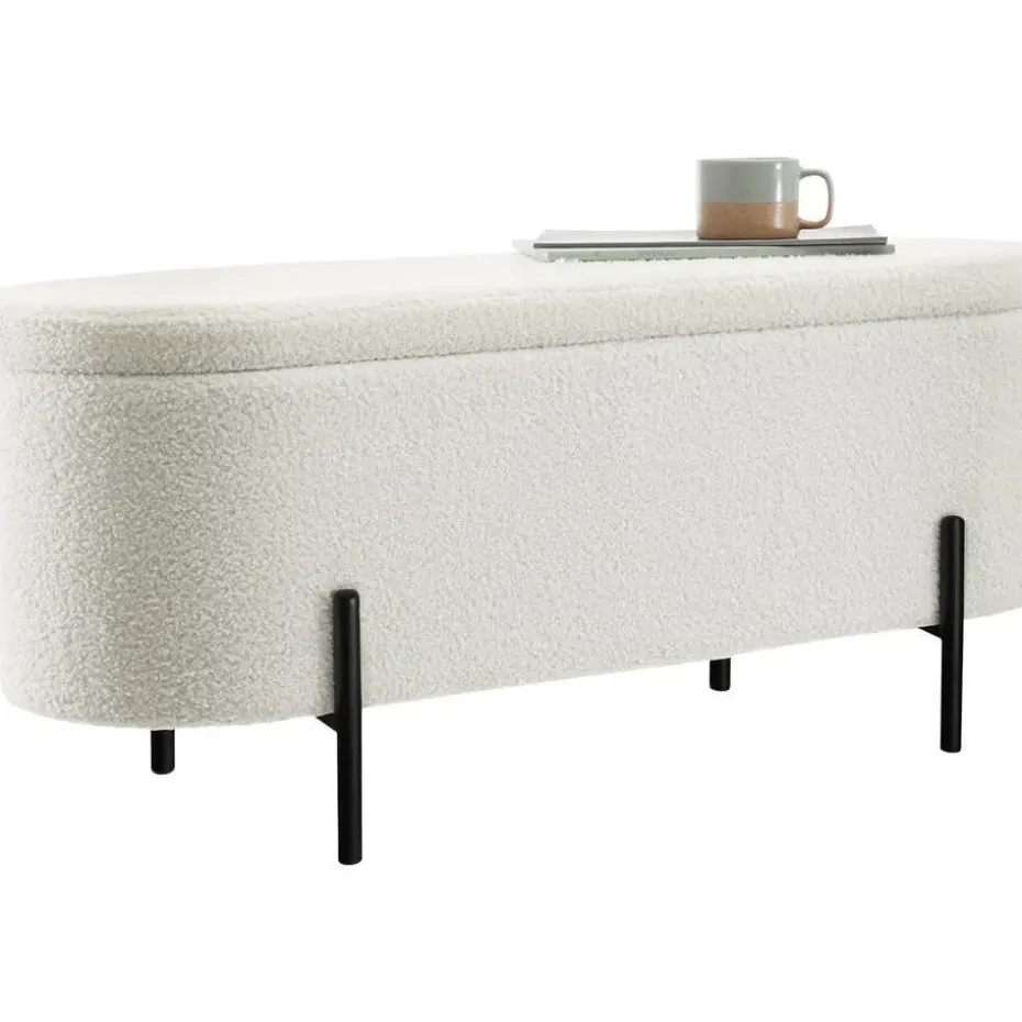 - Gezellige bank met opbergruimte met bouclé-stof in knusse scandi-stijl