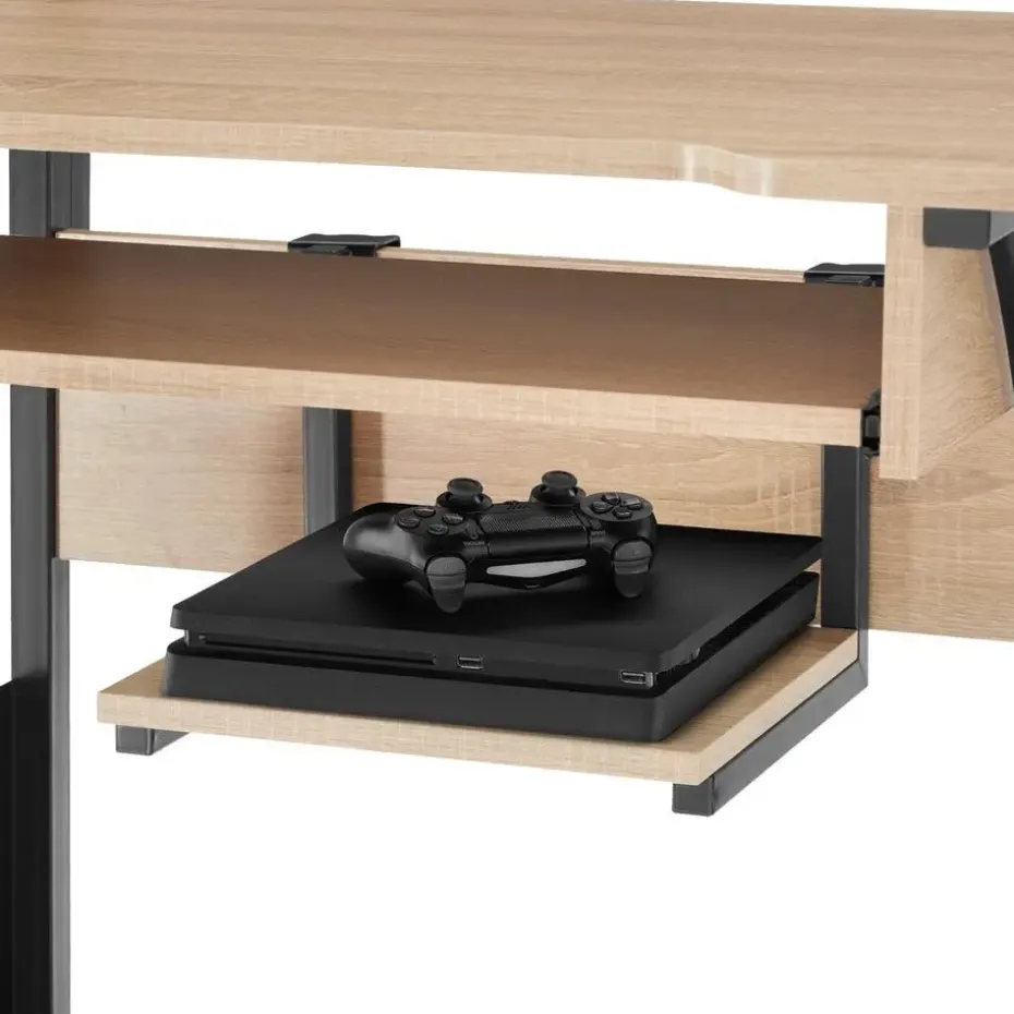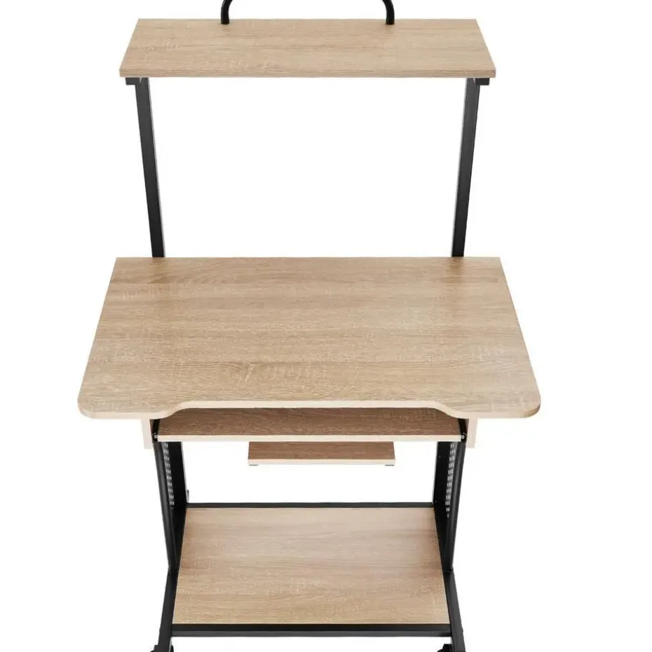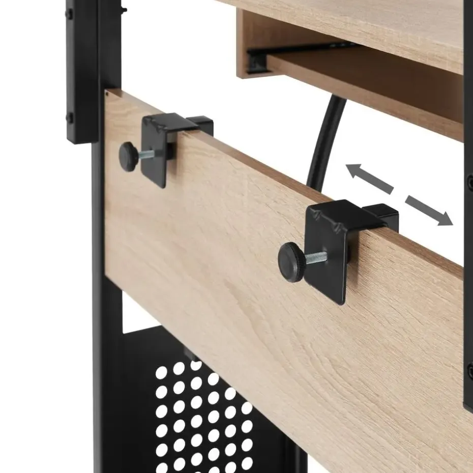 Hoge functionaliteit en een stijlvol design kenmerken het opmerkelijke bureau Fife van tectake. Dit meubel is in typische industriële stijl door de contrastrijke materiaalmix van staal en hout, wat de opvallende look versterkt. Op de vier niveaus kunnen laptop, printer en andere belangrijke accessoires voor efficiënt werken comfortabel worden ondergebracht. De stabiele constructie glijdt zacht over de vloer op lichtlopende wielen – het bureau Fife van tectake is gegarandeerd een echte blikvanger in elk thuiskantoor. Let op: Montage vereist