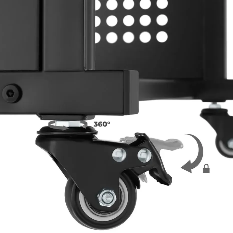 - Vier zwenkwielen, waarvan twee met parkeerrem