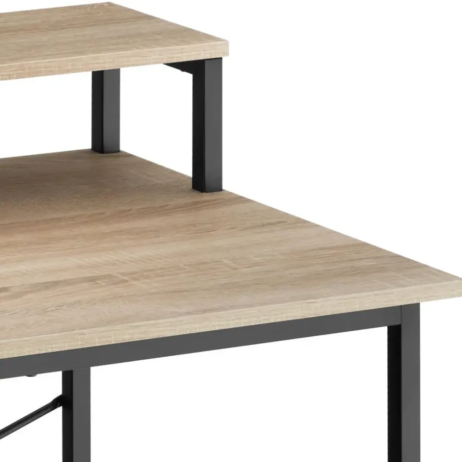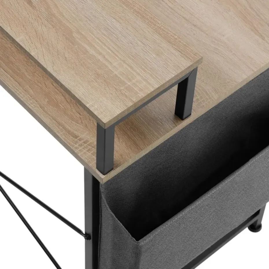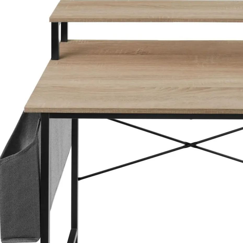 Geef je creativiteit en productiviteit een nieuwe boost met dit functionele bureau. Heldere lijnen en de contrastrijke combinatie van warm hout en koel metaal resulteren in de typische uitstraling van de populaire, neutrale industriële stijl. Een scherm kan perfect op de praktische plank worden geplaatst, terwijl het stoffen vak aan de zijkant veel opbergruimte biedt voor ordners en documenten. Het gepoedercoate frame, de x-vormige steunen en de vloerbeschermende schroefpoten garanderen een hoge stevigheid en uitstekende stabiliteit – de eerste keuze voor geconcentreerd werken in je thuiskantoor. Let op: Montage vereist