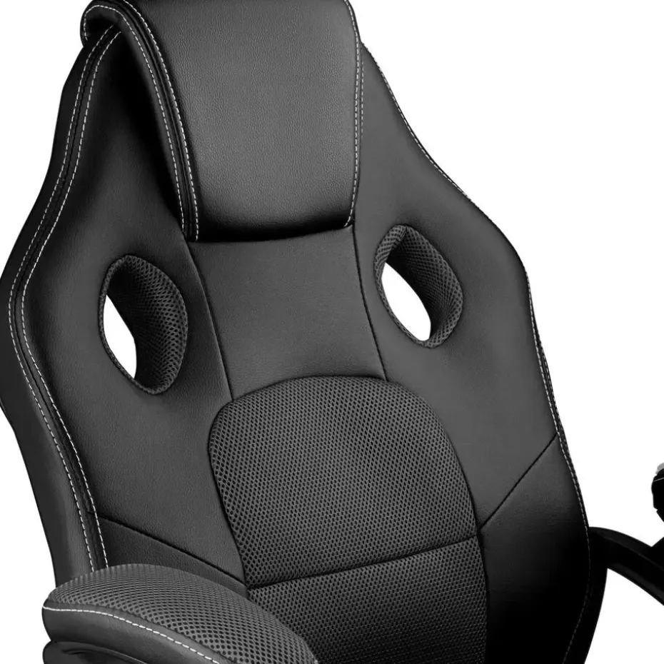In de ergonomisch gevormde racing-bureaustoel van tectake met zijn golvende lijnen en het comfortabele kussen start je vanop de eerste rij. Inwerkingen van luchtig meshweefsel transporteren het vocht weg wanneer het zweterig wordt aan het bureau door het werk of het spelen. Het robuuste voetkruis van de draaistoel garandeert hoge stabiliteit terwijl de slijtvaste dubbele wielen lichtlopend over de vloer glijden. De gebruikte kunststoffen geven de constructie haar grote duurzaamheid en maken de racing-bureaustoel van tectake tegelijkertijd tot een unieke zitbeleving.