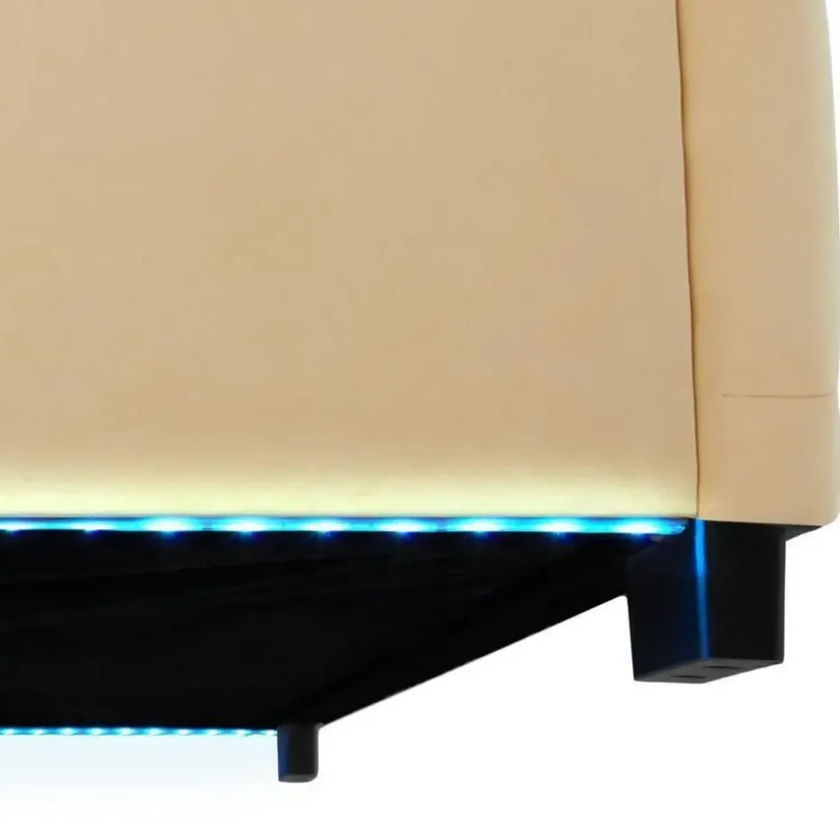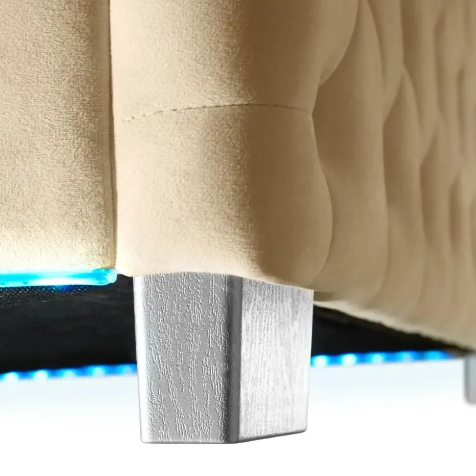 Via de afstandsbediening met zijn verschillende modi zet de geïntegreerde LED-verlichting het bed vakkundig in de schijnwerpers en creëert een indirecte lichtbron voor een ontspannen sfeer. Het solide stalen frame met poedercoating zorgt voor een eersteklas stabiliteit en enorme draagkracht. De robuuste lattenbodem van hout garandeert een optimale ontlasting van de wervelkolom en kan dankzij de gasdrukveer eenvoudig worden opgeklapt voor toegang tot de daaronder liggende opbergruimte.