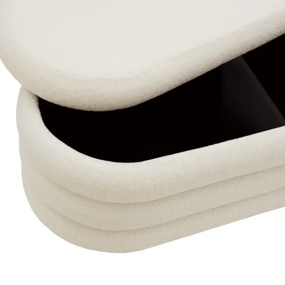 De elegante zitbank stelt je in staat om je woonruimte efficiënt te ordenen zonder concessies te doen aan stijl en comfort. Onder het verwijderbare deksel bevindt zich een royale opbergruimte, verdeeld in twee even grote vakken, die plaats biedt aan kussens, dekens of andere woonaccessoires. Het meubelstuk is dus niet alleen visueel een hoogtepunt, maar vooral ook voor organisatiehelden een echt must-have.