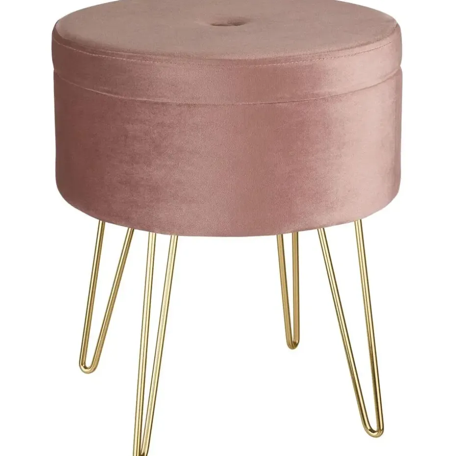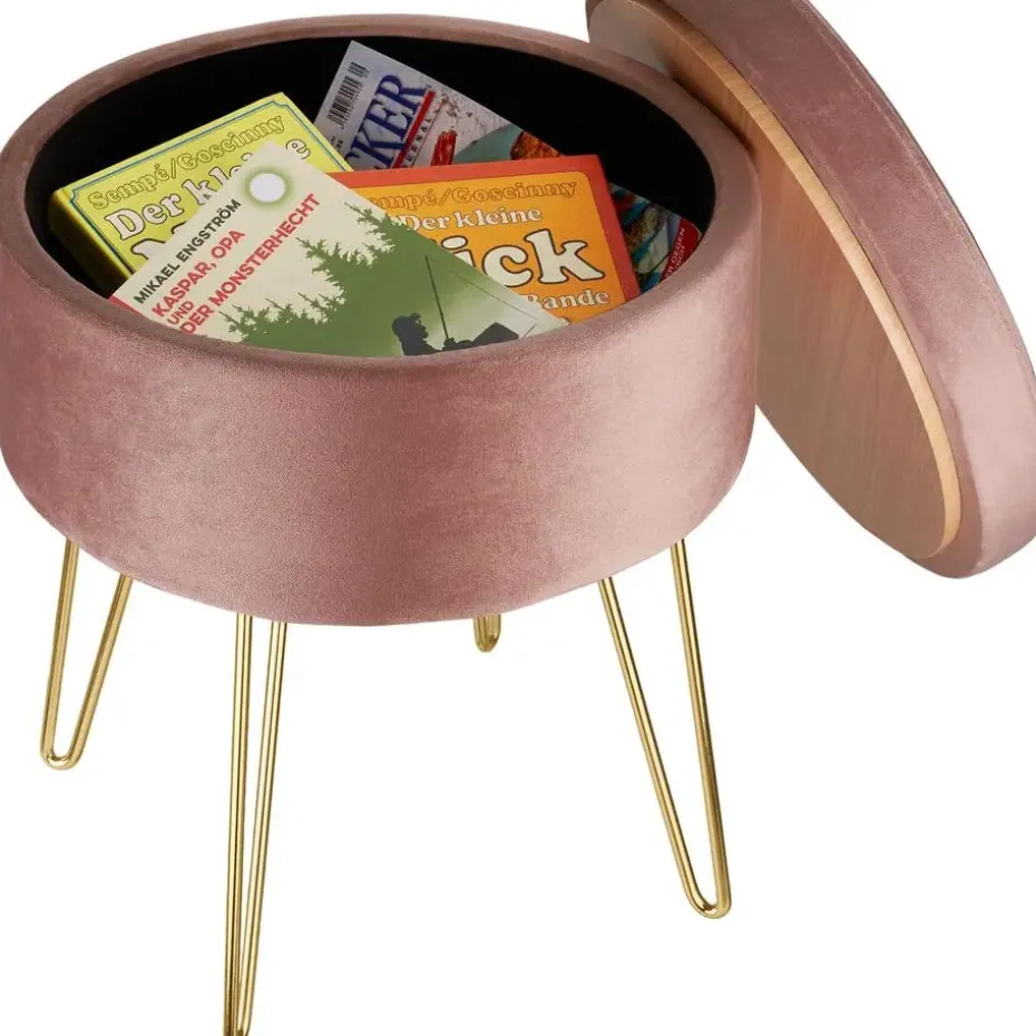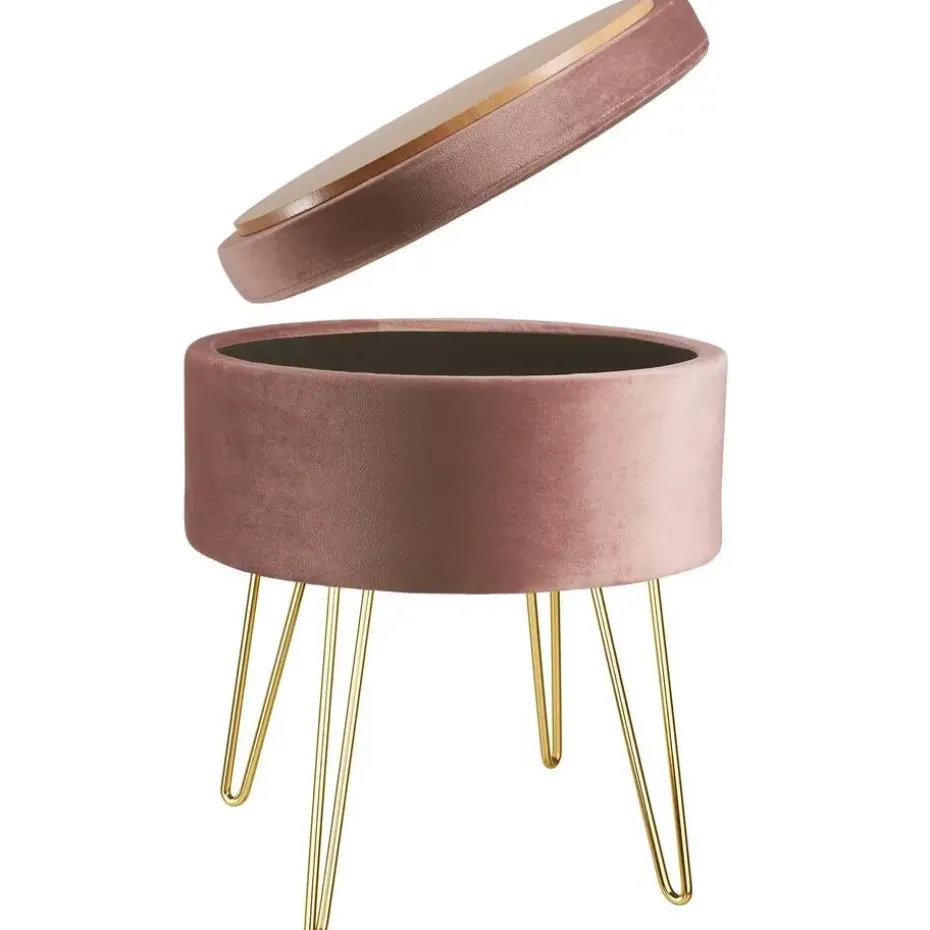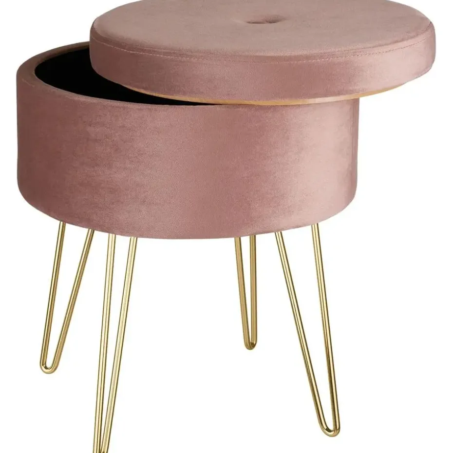 Met de hocker Ava met opbergruimte heb je zeker een eyecatcher die meerdere voordelen combineert. De mooie bekleding en het velours oppervlak maken dit nette meubelstuk tot een echt juweeltje. Ondanks de filigrane uitstraling scoort de doordachte constructie met praktische eigenschappen zoals een hoog draagvermogen en een geïntegreerd opbergvak. Dankzij het aantrekkelijke uiterlijk kan de stijlvolle ronde kruk overal worden gebruikt – of het nu voor de kaptafel in de slaapkamer is of als extra krukje in de woonkamer. Let op: Montage vereist