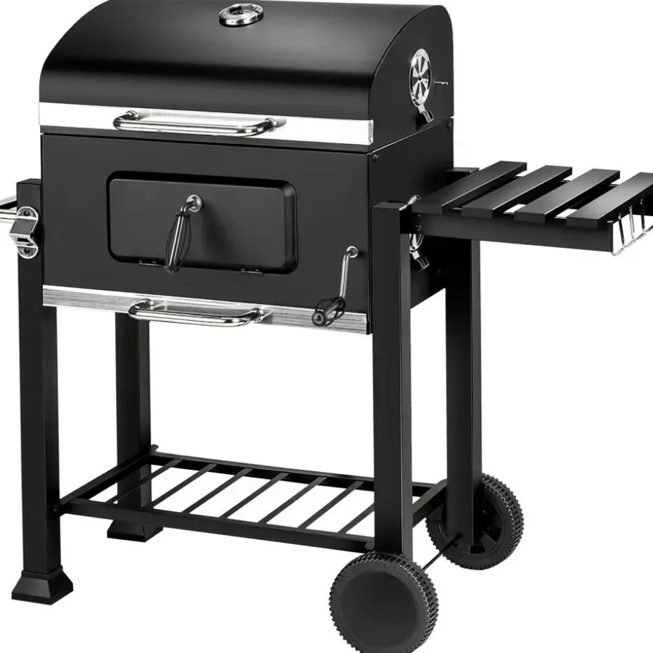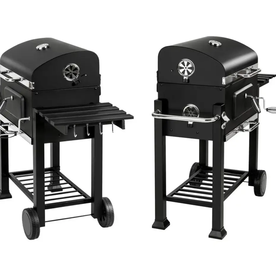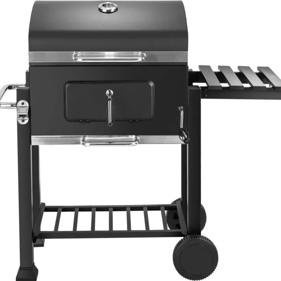 - Variabele barbecuetemperatuur aangezien de houtskoolkuip met een hendel in de hoogte verstelbaar is