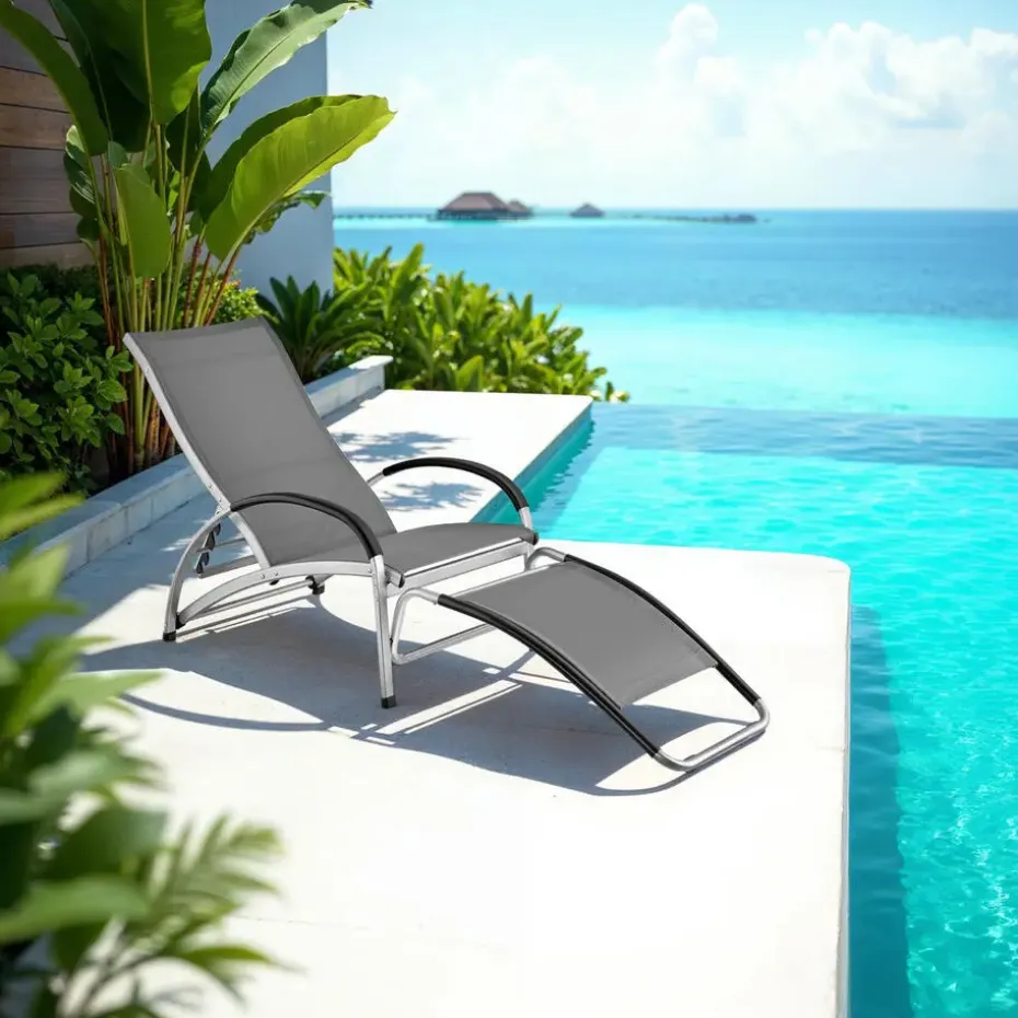 De relaxstoel overtuigt door zijn flexibele rugleuning, die in vier hellingshoeken verstelbaar is, en een ergonomische vormgeving die zich ideaal aan jouw lichaam aanpast. Of het nu gaat om ontspannende momenten in de zon of zacht schommelen in de schaduw – deze buitenligstoel past zich aan jouw behoeften aan.