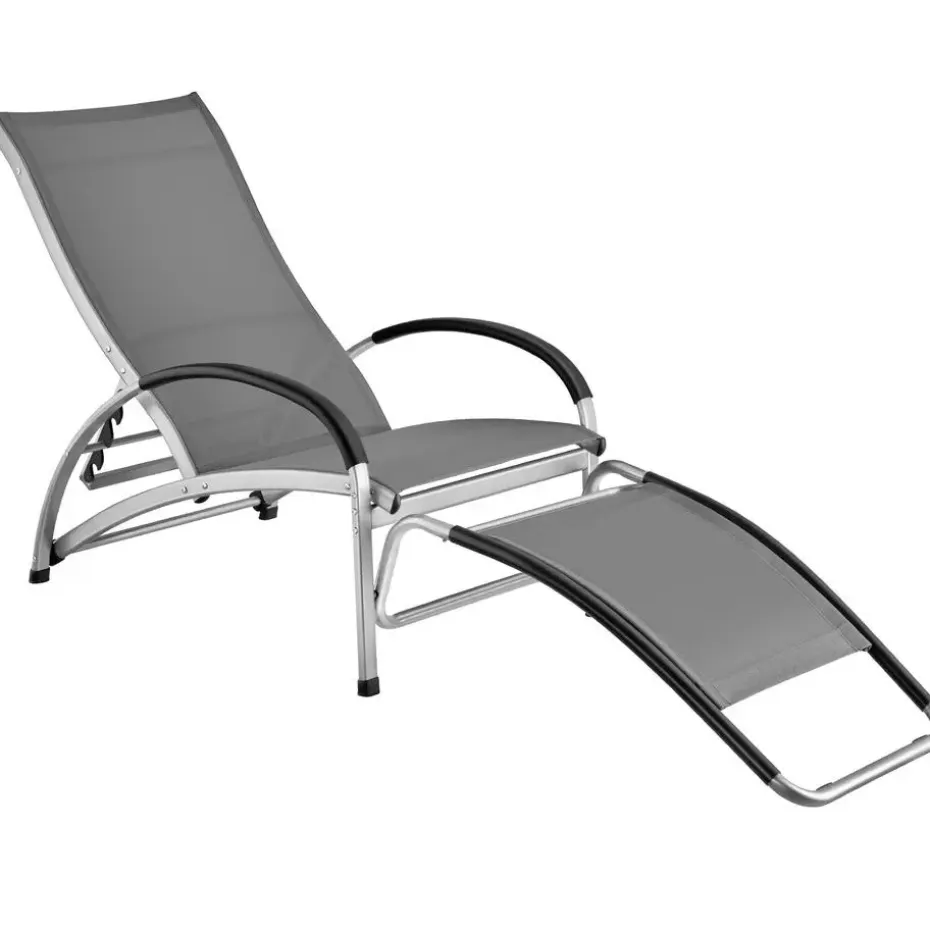Naar naast het hoogste comfort scoort het zonnebed met geselecteerde materialen: het frame van gepoedercoat aluminium zorgt niet alleen voor enorme stabiliteit en draagkracht, maar maakt, in combinatie met de ademende en waterafstotende textilene-stof, het outdoor-meubel absoluut weerbestendig. De vloerbeschermende, slipvaste kunststofvoetjes garanderen bovendien absolute standvastigheid op elke ondergrond.