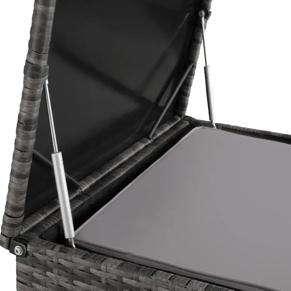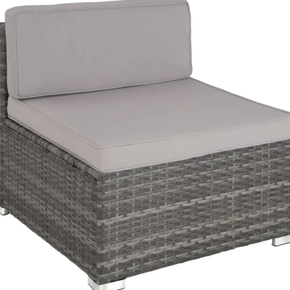 Comfortabel en veelzijdig: deze gezellige wicker zitgroep van tectake geeft je tuin een heel persoonlijke touch. Het multifunctionele ensemble van 5 stoelen, tafel en opbergbox kan volledig naar behoefte en beschikbare plaats opgesteld worden. Het stabiele frame van staal en de zachte kussens bieden optimaal zitcomfort. De onderhoudsvriendelijkheid maakt de lichte loungeset zowel binnen als buiten tot een uitstekende rustplaats waar u de voeten omhoog kunt leggen. Eén model – vele mogelijkheden. Combineer grenzeloos met deze wicker zitgroep van tectake. Let op: Montage vereist