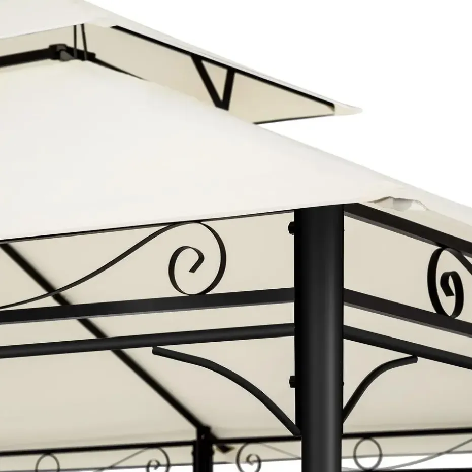 Met dit luxe tuinpaviljoen met 6 zijdelen maak je van je tuin een echte feel good-oase. Als schaduwschenker op hete dagen of voor gezelige feestjes in de avonden – het paviljoen is uitstekend geschikt voor elk gebruik in open lucht. De ingewerkte ornamentversieringen geven het paviljoen een luxe uitstraling. Ook superhandig; door de zijwanden wordt je niet gestoord door nieuwsgierige blikken. Het afgezette dak laat de warmte optimaal ontsnappen en frisse lucht circuleren. Haal nu deze praktische en luxe tuinpaviljoen in huis en geniet van de zomer! Let op: Montage vereist