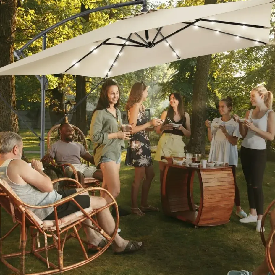 - Afmetingen parasol (BxD): ca. 250 x 250 cm