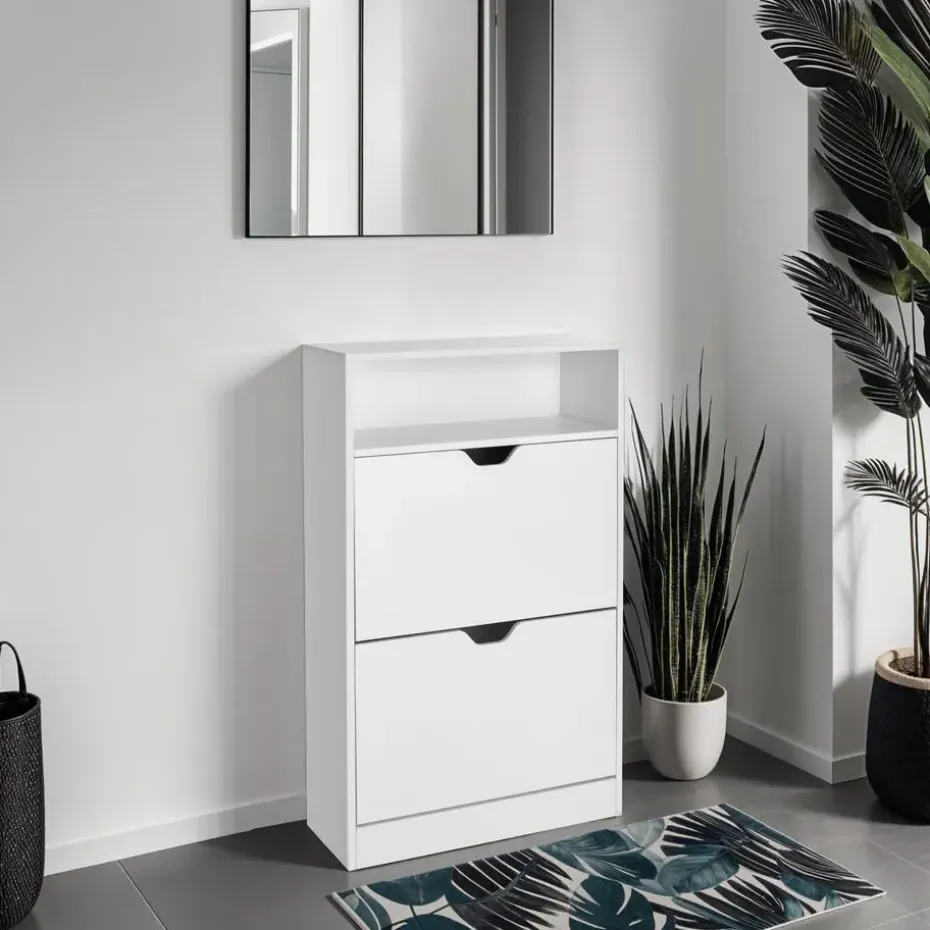 - Moderne schoenenkast met 2 kantelvakken en in totaal 4 niveaus voor tot ca. 12 paar schoenen