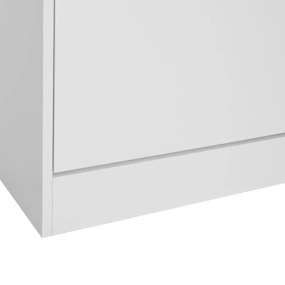Het open vak is perfect geschikt voor sleutels, portemonnees, sjaals of mutsen. De handgreepuitsparingen aan de voorkanten zorgen voor een goede ventilatie en benadrukken bovendien het moderne design van de schoenenkast. Dankzij de hoge draagkracht en de meegeleverde hoekverbinders voor veilige kantelbeveiliging staat de schoenenkast stabiel en betrouwbaar, ook bij volle belading.