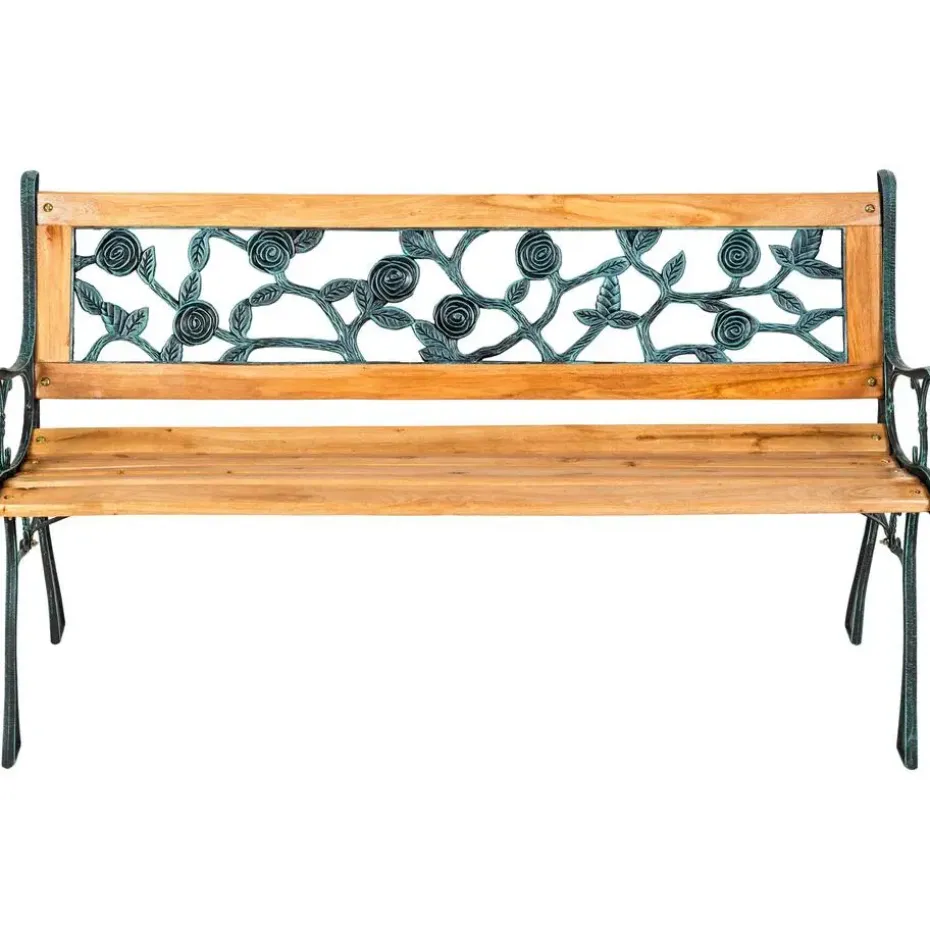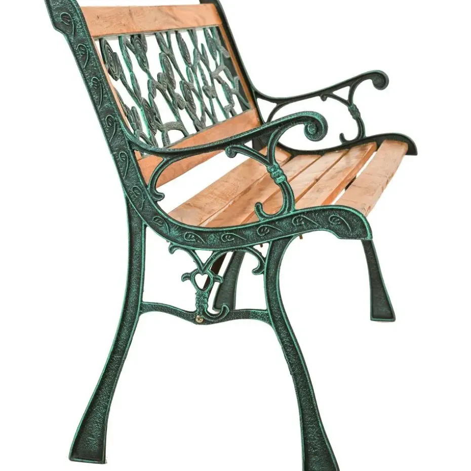 Deze mooie gietijzeren tuinbank tovert je tuin om in een echte oase van welzijn. Met haar nostalgisch ontwerp en de mooie afwerking uit gietijzer en gelakt hout is onze bank een echte blikvanger en integreert ze zich perfect in de plantenwereld in je tuin.