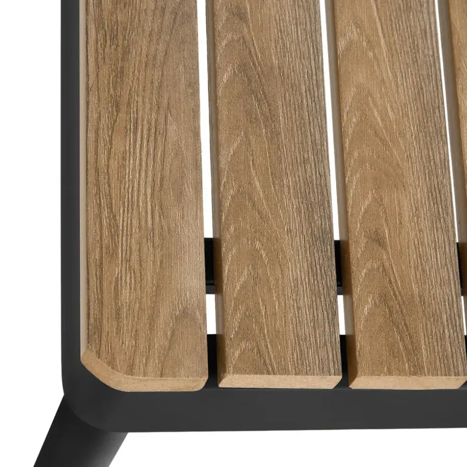 Het roestvrije frame van ultralicht aluminium verleent de tuinmeubelset een enorme stabiliteit en grote draagkracht. Het tafelblad van de salontafel is robuust, weerbestendig en duurzaam en overtuigt met zijn aantrekkelijke look in fijne houtoptiek. Voor betrouwbare stabiliteit zorgen de antislip en vloerbeschermende voetjes van kunststof.