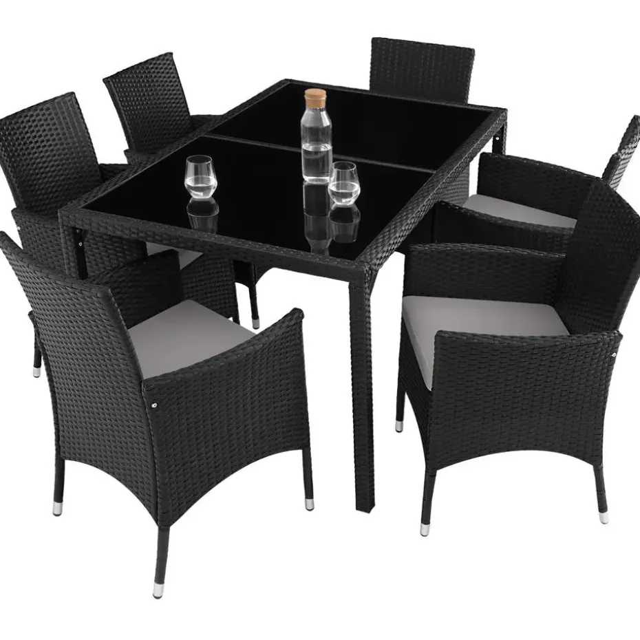 Ervaar met onze wicker zithoek 6+1 een nieuwe dimensie van comfort en esthetiek in je tuin. Robuust, onderhoudsvriendelijk en stijlvol – dit tuinmeubelset laat geen wensen over en verandert elk buitenruimte in een oase van rust.