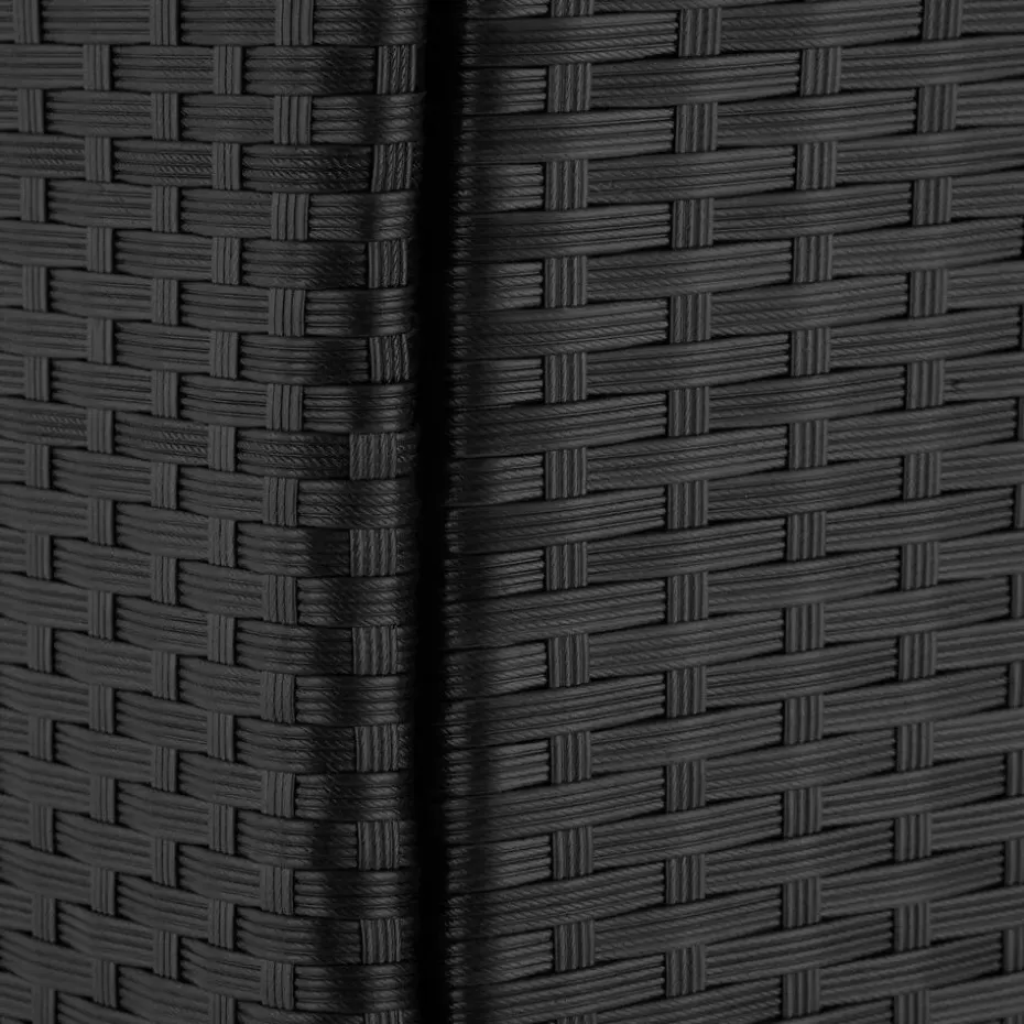 - Materiaal: Onderstel van staal, wicker-vlechtwerk van polyurethaan, roestvrij stalen schroeven, glazen tafelblad