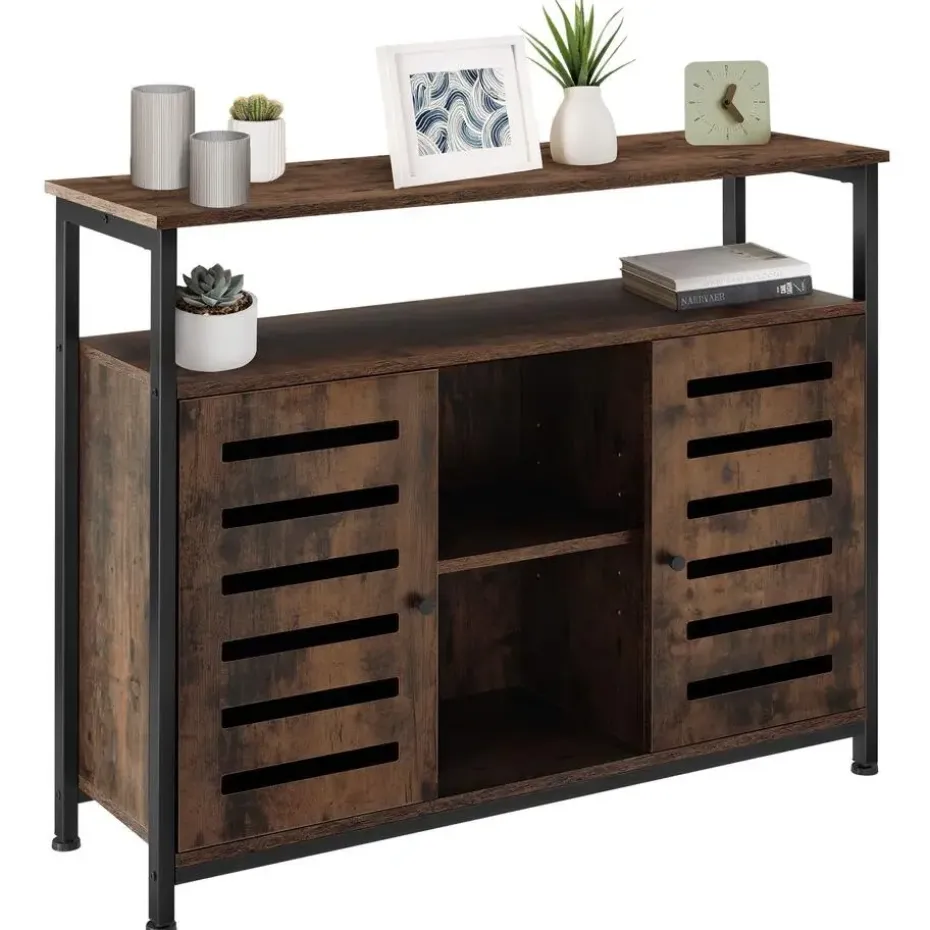 Als je van mooie contrasten en een helder design houdt, dan is de veelzijdige wandkast Warrington van tectake een absolute must-have voor je huis. Het zwarte stalen frame, de natuurlijk nagebootste houtlook en het moderne lijnenspel zorgen voor een indrukwekkende uitstraling met een opvallende industriële touch. Twee planken, twee vakken en een open middengedeelte bieden een uitgebreide presentatieruimte en enorme opbergruimte. Kenmerkend voor deze puristische meubelstijl is de hoge functionaliteit, die hier tot uiting komt in de vorm van eenvoudig te sluiten magneetdeuren, verstelbare legplanken en nauwkeurig instelbare schroefpoten. Let op: Montage vereist