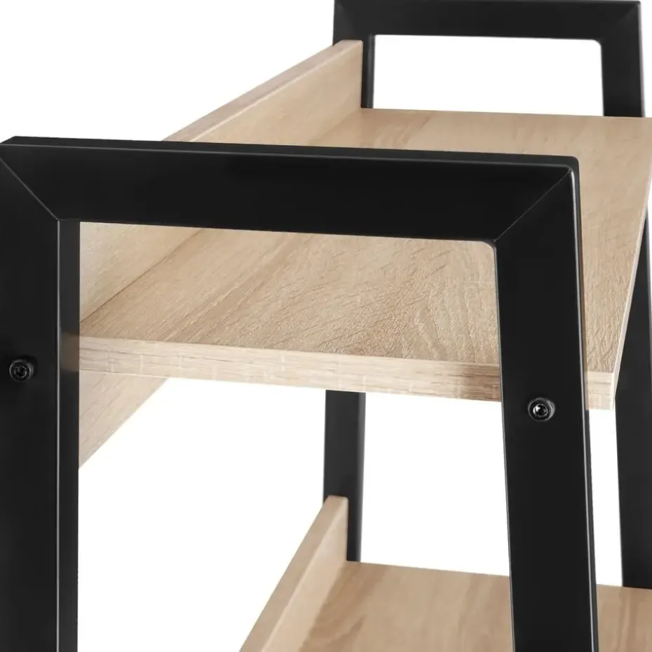 Haal met dit expressieve wandrek van tectake de spannende fabrieks-charme in huis. Kenmerkend voor de industriële stijl is de combinatie van de elementen hout en staal in een smaakvol, neutraal design, wat resulteert in geweldige combinatiemogelijkheden. De licht versprongen niveaus bieden uitstekende ruimte voor een individuele vormgeving van je favoriete decoratieve elementen. De met melamine gecoate planken, het stabiele frame en de in hoogte verstelbare kunststof poten bieden de beste voorwaarden voor een lang en veilig gebruik van dit veelzijdige meubelstuk. Let op: Montage vereist