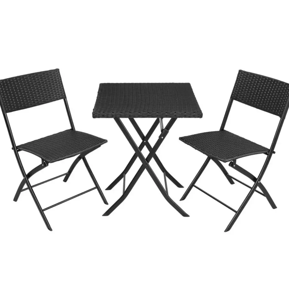 Deze driedelige wicker set van tectake overtuigt met een chique look, hoge flexibiliteit en veel gezelligheid. De compacte zitgarnituur is ideaal geschikt voor kleine balkons, terrassen of nissen. Indien niet in gebruik, kunnen de afzonderlijke elementen ruimtebesparend gevouwen worden. De tafel alsook de beide stoelen van gepoedercoat staal en het fijne vlechtwerk van duurzaam wicker worden klaar gemonteerd geleverd. De combinatie van robuust frame en laag gewicht maken deze onderhoudsvriendelijke wickerset van tectake perfect voor transport en de camping. Let op: Montage vereist