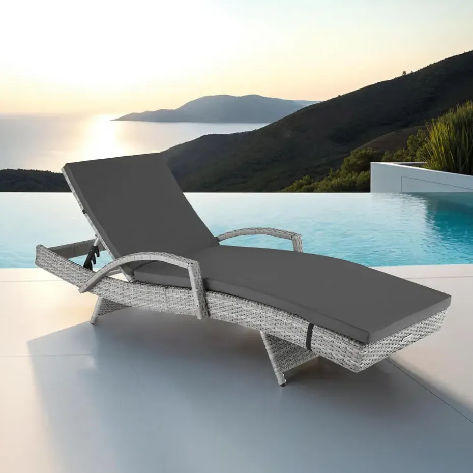 Met dit functionele wicker ligbed ben je tijdens het warme seizoen altijd optimaal uitgerust. De stijlvolle en moderne constructie wordt gekenmerkt door haar aantrekkelijke ontwerp en het hoge ligcomfort. Met de 5-voudig verstelbare rugleuning, het zachte kussen en de praktische armleuningen vind je altijd de ideale positie voor maximale ontspanning. Het duurzame vlechtwerk van wicker en het robuuste frame van aluminium maken dit lichte en roestvrije liegbed tot het perfecte outdoor meubel – deze knusse zonnestoel past zich perfect op jou aan! Let op: Montage vereist