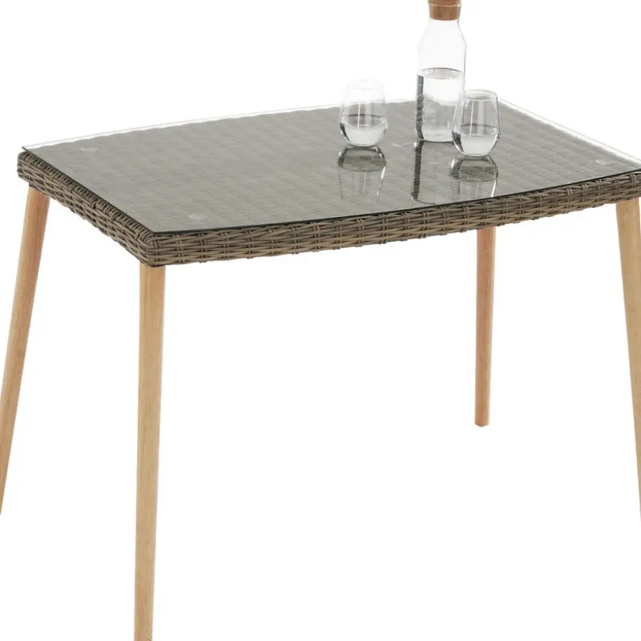 - Materiaal: aluminium, polyethyleen, wicker, rubberboom, glas