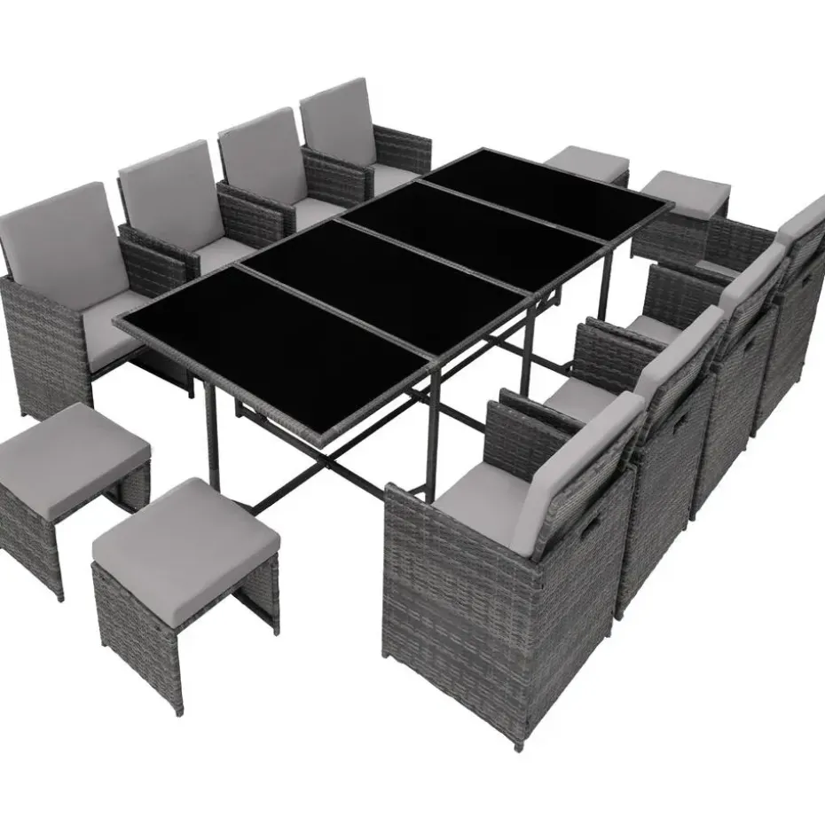 De wicker Zitgroep Palma 8+4+1 is de ideale keuze voor wie op zoek is naar stijlvolle en functionele tuinmeubelen. Met plaats voor tot 12 personen biedt deze wicker tuinmeubelset genoeg ruimte voor gezellige avonden en feestelijke gelegenheden. Of het nu gaat om verjaardagen, familiebijeenkomsten of spontane barbecues – deze zitgroep creëert de perfecte sfeer voor onvergetelijke momenten in de buitenlucht.