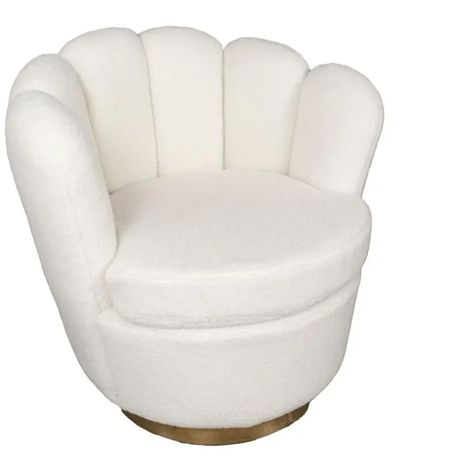 Materiaal: De fauteuil is gemaakt van een combinatie van metaal voor het onderstel en teddy stof/textiel voor de zitting, wat zorgt voor een comfortabele en stijlvolle zitervaring.