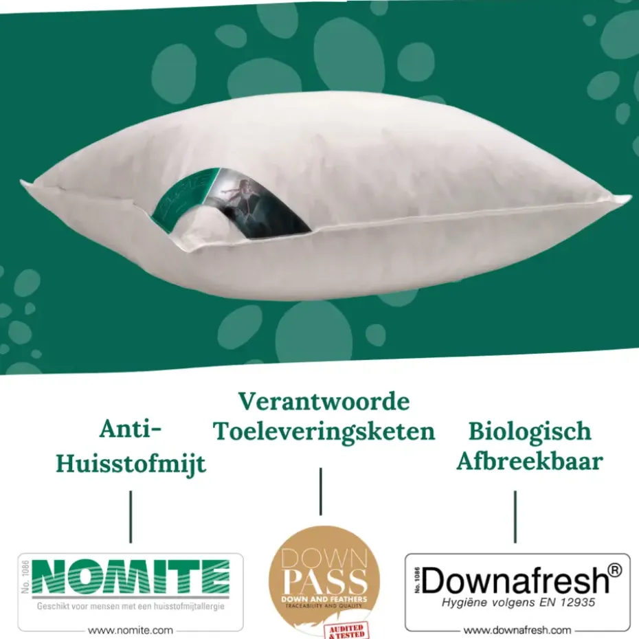 Dit hoofdkussen van Ten Cate. gevuld met 1000 gram eendenveertjes. laat zich gemakkelijk kneden totdat u in de perfecte slaaphouding ligt. Dit hoofdkussen van Ten Cate wordt geleverd in een luxe draagtas.