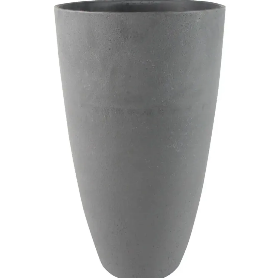Hoge bloempot/plantenpot of vaas van gerecycled kunststof en steenpoeder in de kleur donkergrijs met diameter 29 cm en hoogte 50 cm. Potten/vazen voor kamerplanten, buitenplanten, bloemen of kunstplanten. Deze bleoemenvaas/pot voor binnen en buiten heeft een stijlvolle uitstraling in elk interieur. Een unieke duurzame mix van materialen dat nu geen afval is, maar een prachtige duurzame bloempot. Een sterke, mooie pot die vriendelijk is voor het milieu en de portemonnee. De pot/vaas heeft gaatjes in de onderkant dus een opvangschaal is voor binnen gebruik vereist. Zoeknaam serie voor de schaal is Nova concrete donkergrijs. Deze serie potten hebben een eigen drainagesysteem onderin de pot.