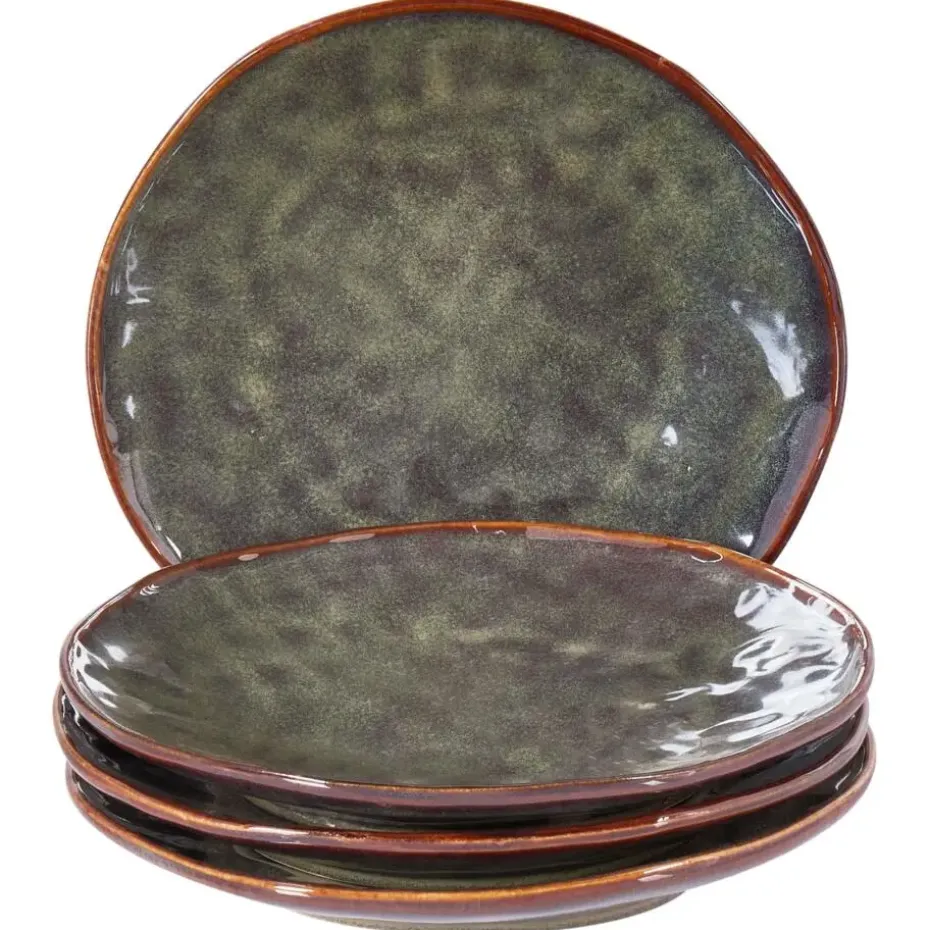Handgemaakte dessertborden set voor 4 personen. Maak je eettafel af met deze set van 4 bijzetborden in een charmante donkergroene tint, ontworpen om zowel stijl als functionaliteit te bieden. Deze borden zijn handgemaakt van duurzaam steengoed, perfect voor dagelijks gebruik en gemakkelijk te onderhouden. Elk bord is afgewerkt met een prachtig reactief glazuur, waardoor elk bord een uniek meesterwerk is. Met hun royale afmetingen en unieke ontwerp brengen deze borden elegantie in elke maaltijd. Bovendien zijn ze vaatwasmachine- en magnetronbestendig, waardoor ze net zo handig als mooi zijn.