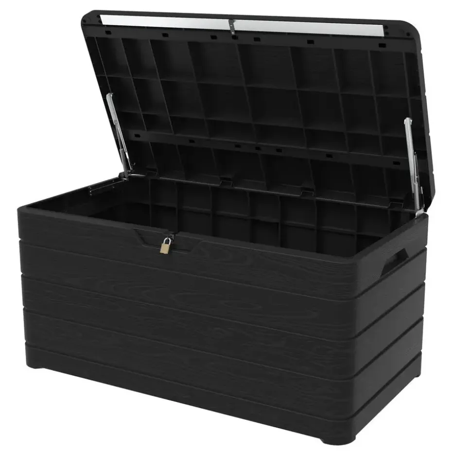 De Toomax Dolomiti opbergbox is de perfecte oplossing voor het opbergen van kussens, tuinaccessoires en andere spullen in je tuin of op je terras. Deze stijlvolle en functionele opbergbox biedt een combinatie van gebruiksgemak, duurzaamheid en een aantrekkelijk ontwerp. Door het grote volume van 500 liter is er genoeg plek voor het opbergen van bijvoorbeeld tuinkussens of verschillende soorten tuingereedschap. De opbergbox beschikt over een hangslotvoorziening zodat je de box volledig kan afsluiten. (hangslot niet meegeleverd).