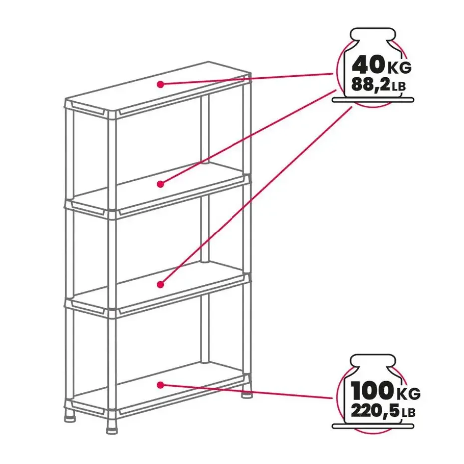 Het Toomax universal pro opbergrek 4 planken – 90x40x138 cm is de perfecte oplossing voor het opbergen van spullen uit je tuin of in je garage. Dit stijlvolle en multifunctionele opbergrek biedt een combinatie van gebruiksgemak, duurzaamheid en een aantrekkelijk ontwerp. Op de bodemplank kan je maximaal 100 kg plaatsen. Op de overige 3 planken kan je 40 kg per plank plaatsen.