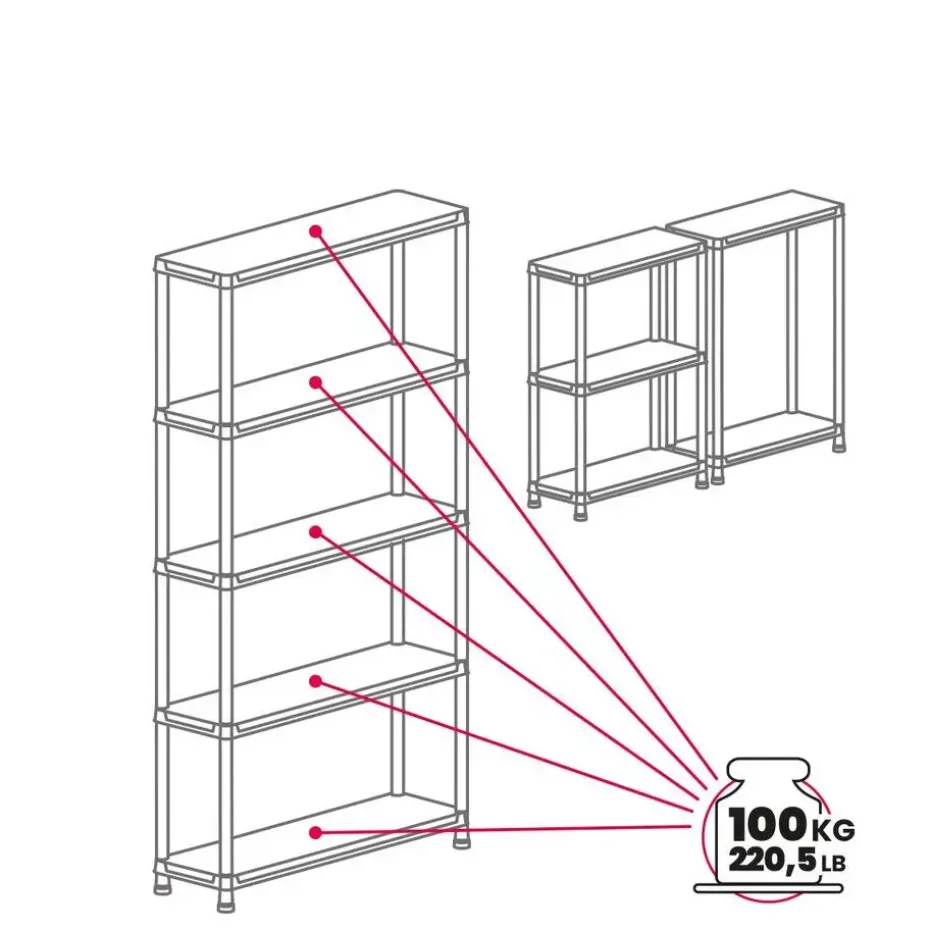 Het Toomax universal pro opbergrek 5 planken – 100x40x180 cm is gemakkelijk in elkaar te zetten door middel van klikverbindingen. Hiervoor is geen gereedschap benodigd.
