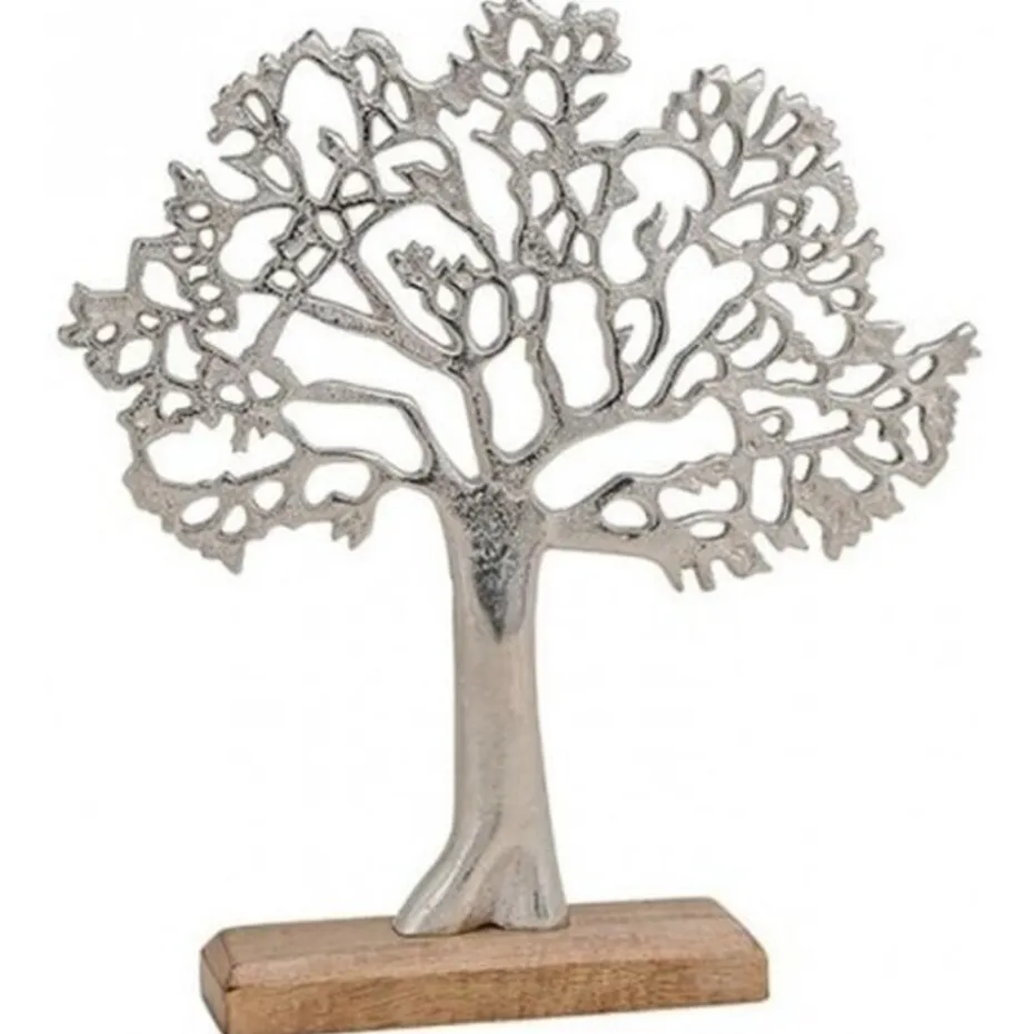 Metalen Tree of Life Decoratieboom op Mangohouten Standaard – 33 cm