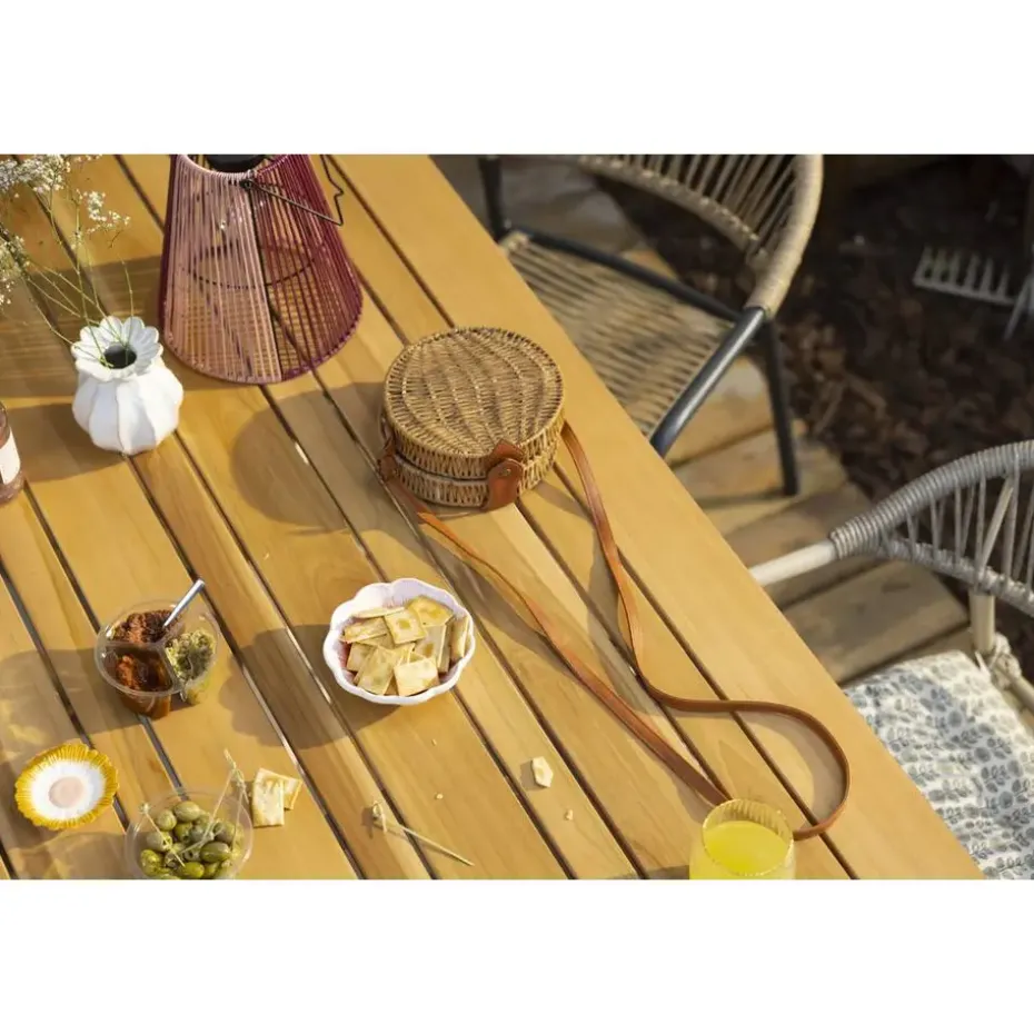 Tuintafel Perpignan is een ruime zandkleurige buitentafel gemaakt van teakhout en aluminium. De tuintafel heeft een afmeting van 75x200x100 cm en biedt plaats voor 6 personen. Combineer met een van onze tuinstoelen en geniet van de heerlijke lange zomeravonden in jouw tuin.