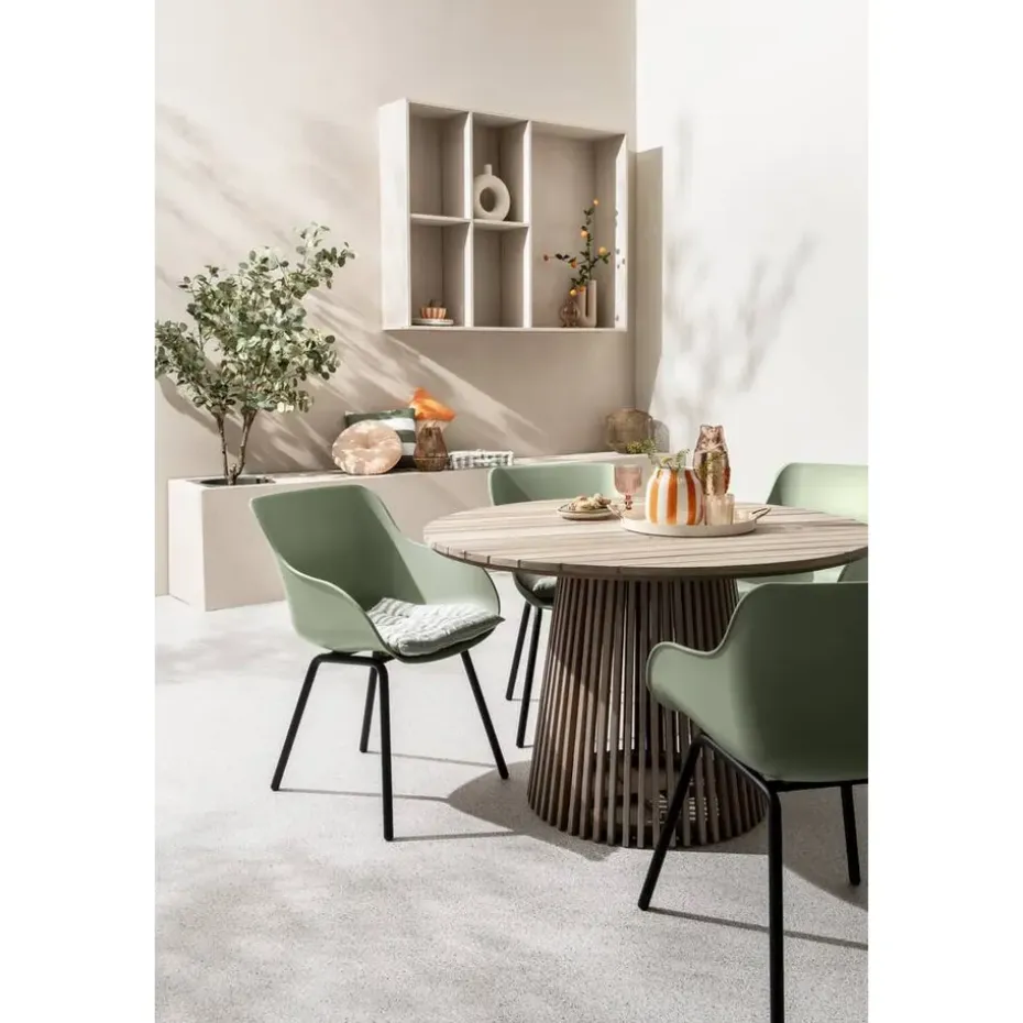 De tuintafel Saône is gemaakt van acaciahout. Daardoor heeft de ronde tuintafel een landelijke uitstraling. Met een hoogte van 76 cm en een diameter van 120 cm is hij geschikt voor ongeveer 6 personen. Dus ben je op zoek naar een landelijke tuintafel? Dan is de Saône wellicht geschikt voor jou.